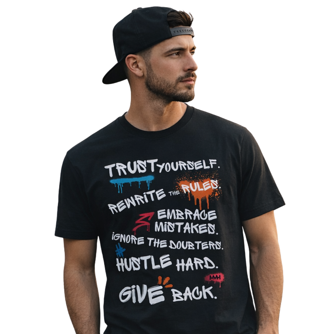 • Man in hoodie with motivational text design