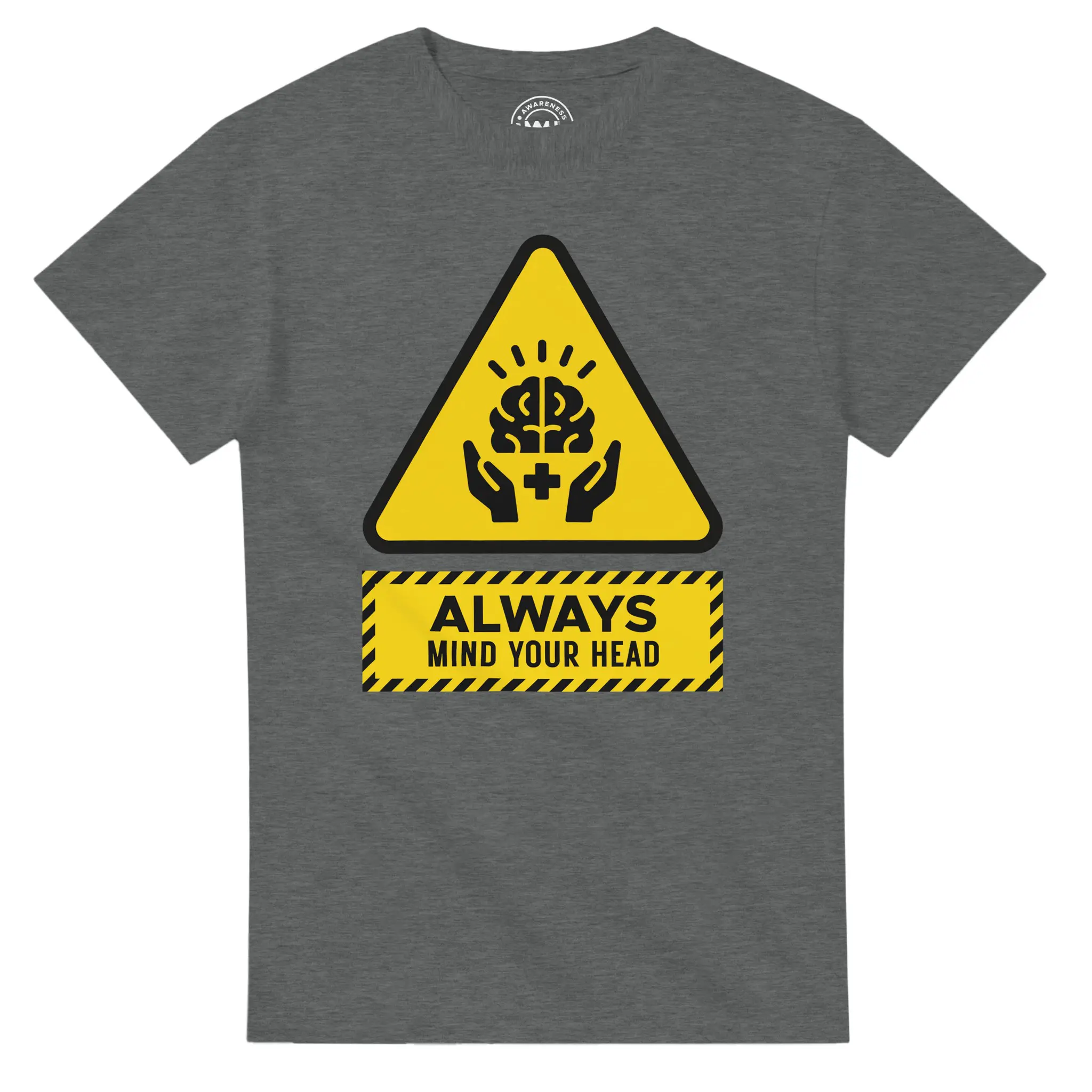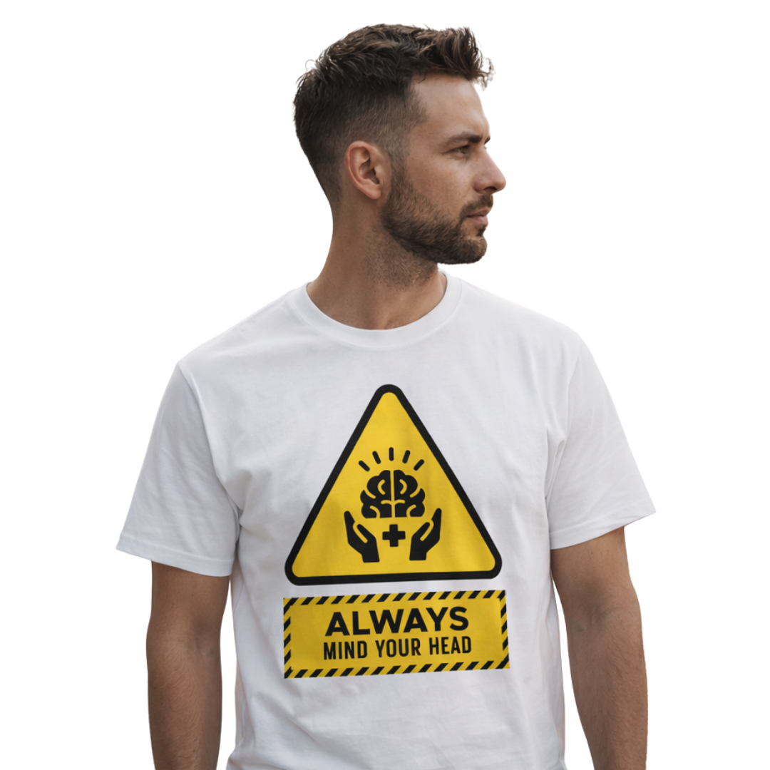 As a standout piece in the Mind Your Head collection, this tee is designed to stop people in their tracks. The graphic combines the urgency of a warning sign with the empathy of the MMH “Brain & Hands” symbol. Printed on our durable heavy cotton base, it’s a rugged, wearable reminder that the most dangerous hazards are often the ones we can’t see.