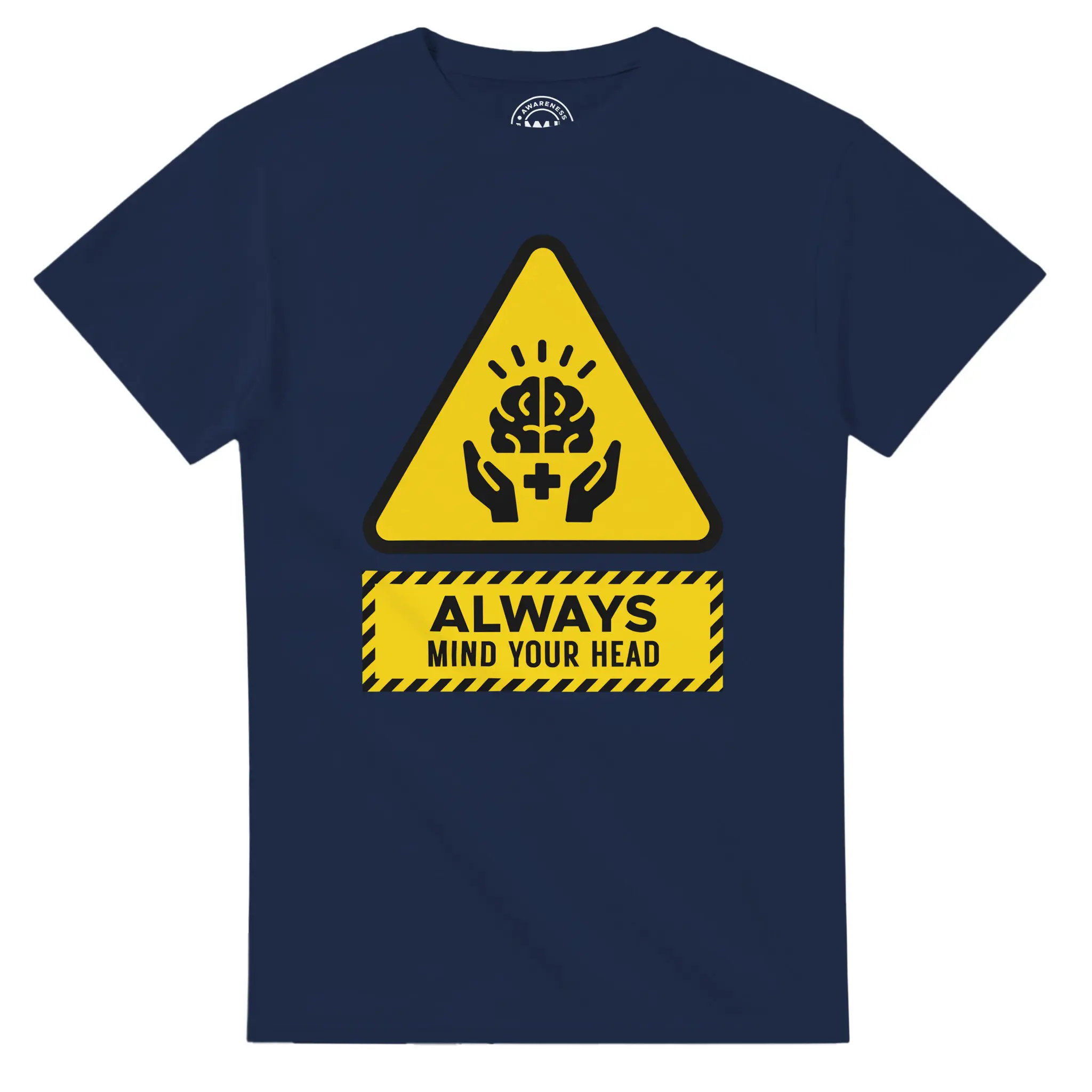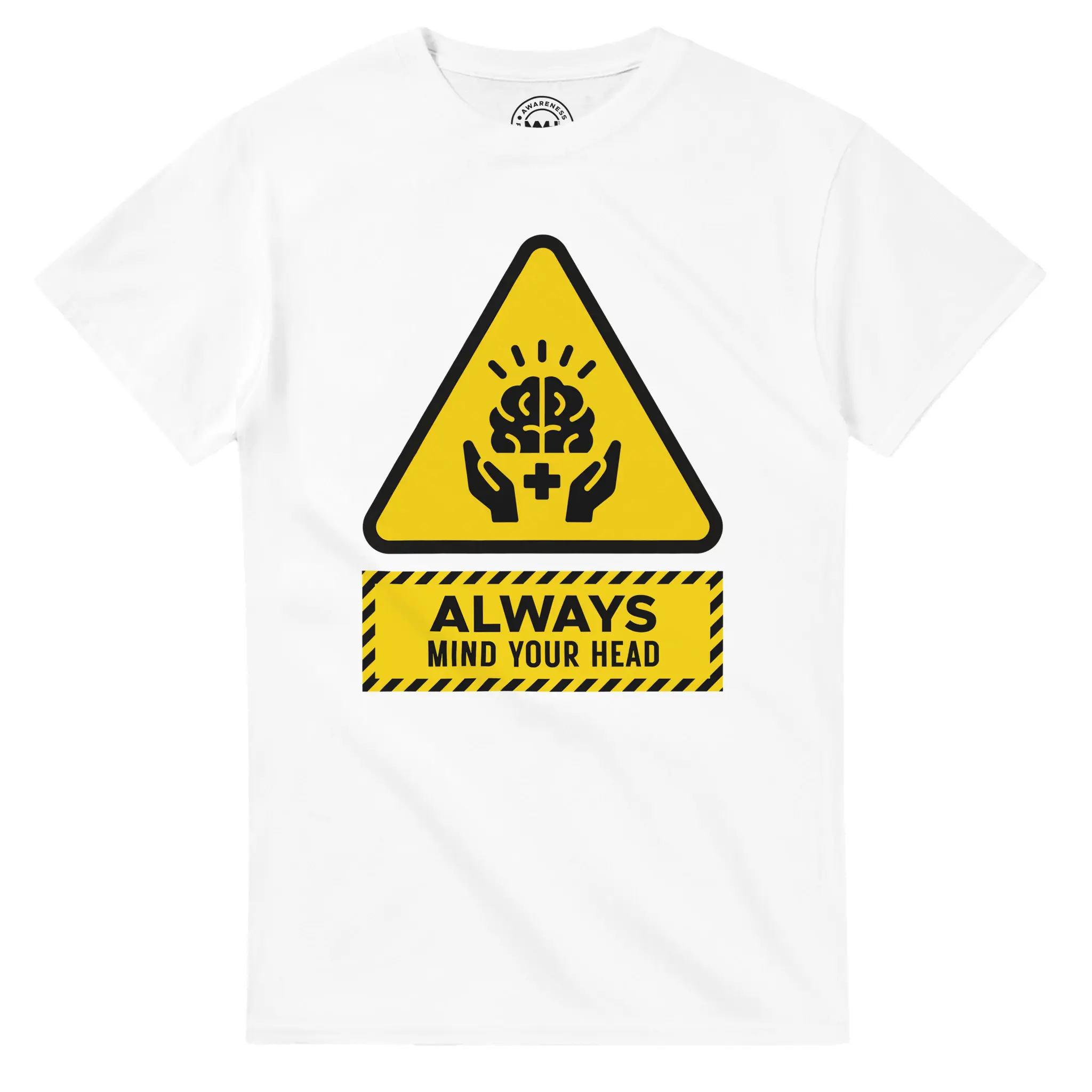 We see signs telling us to watch our step, mind the gap, and wear a hard hat. But where are the signs reminding us to take care of our minds? The Always Mind Your Head Icon T-Shirt fills that gap. It appropriates the familiar aesthetic of industrial safety gear to deliver a message that is often overlooked: your mental state requires constant care and protection.