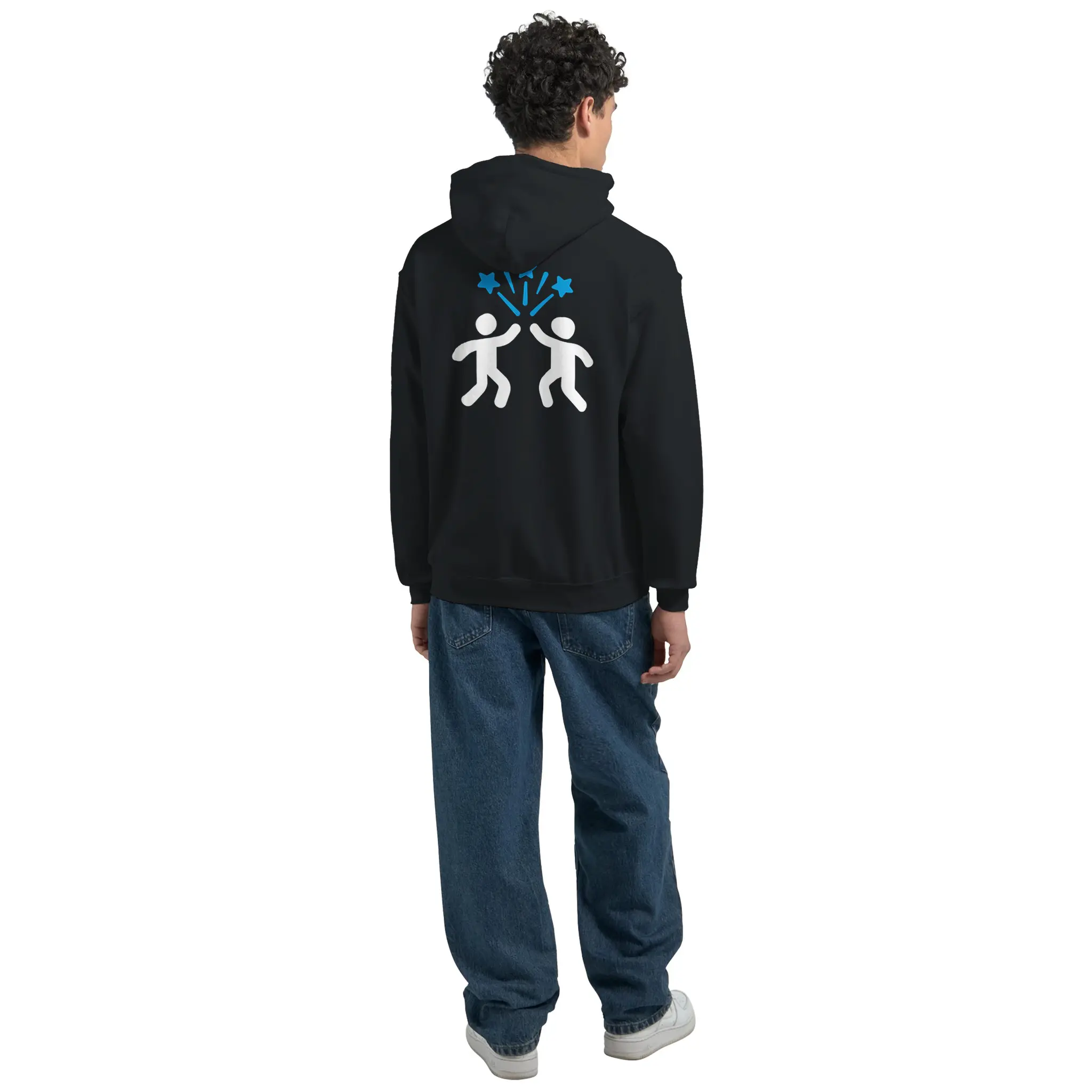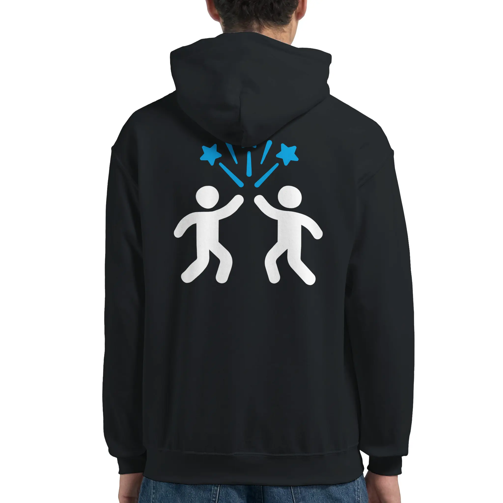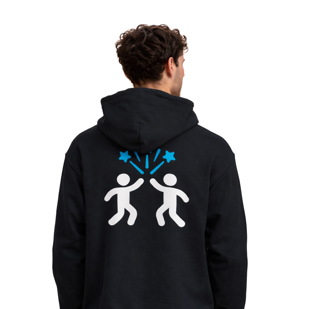 Part of the Celebrate Small Wins collection, this design uses bold, minimal iconography to deliver its message. The back print features uplifting figures and a starburst element, symbolizing shared success and positivity. Printed on our reliable heavy blend fleece, it keeps you warm while you keep moving forward.