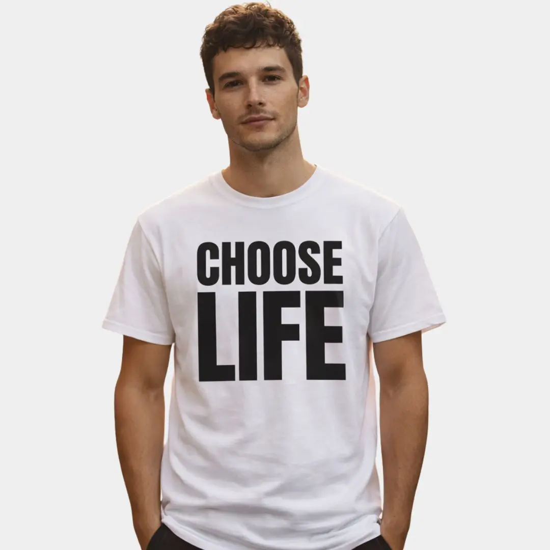Featuring the iconic, bold Choose Life typography, this tee carries a classic, boxy American fit. It’s direct, zero-compromise, and built to stand as a definitive statement. Applied with high-definition Direct-to-Film (DTF) technology, the core directive—“Reject apathy. Choose the fight.”—is bonded securely to the fabric, engineered to endure the heavy days alongside you.