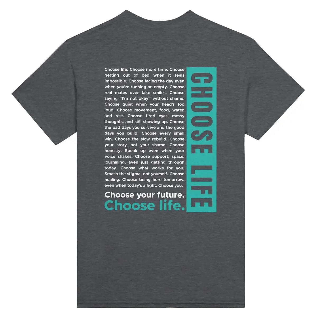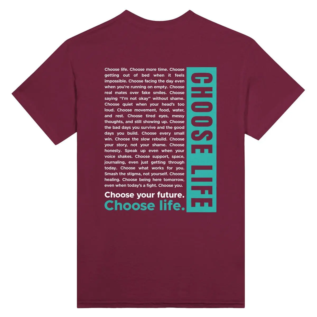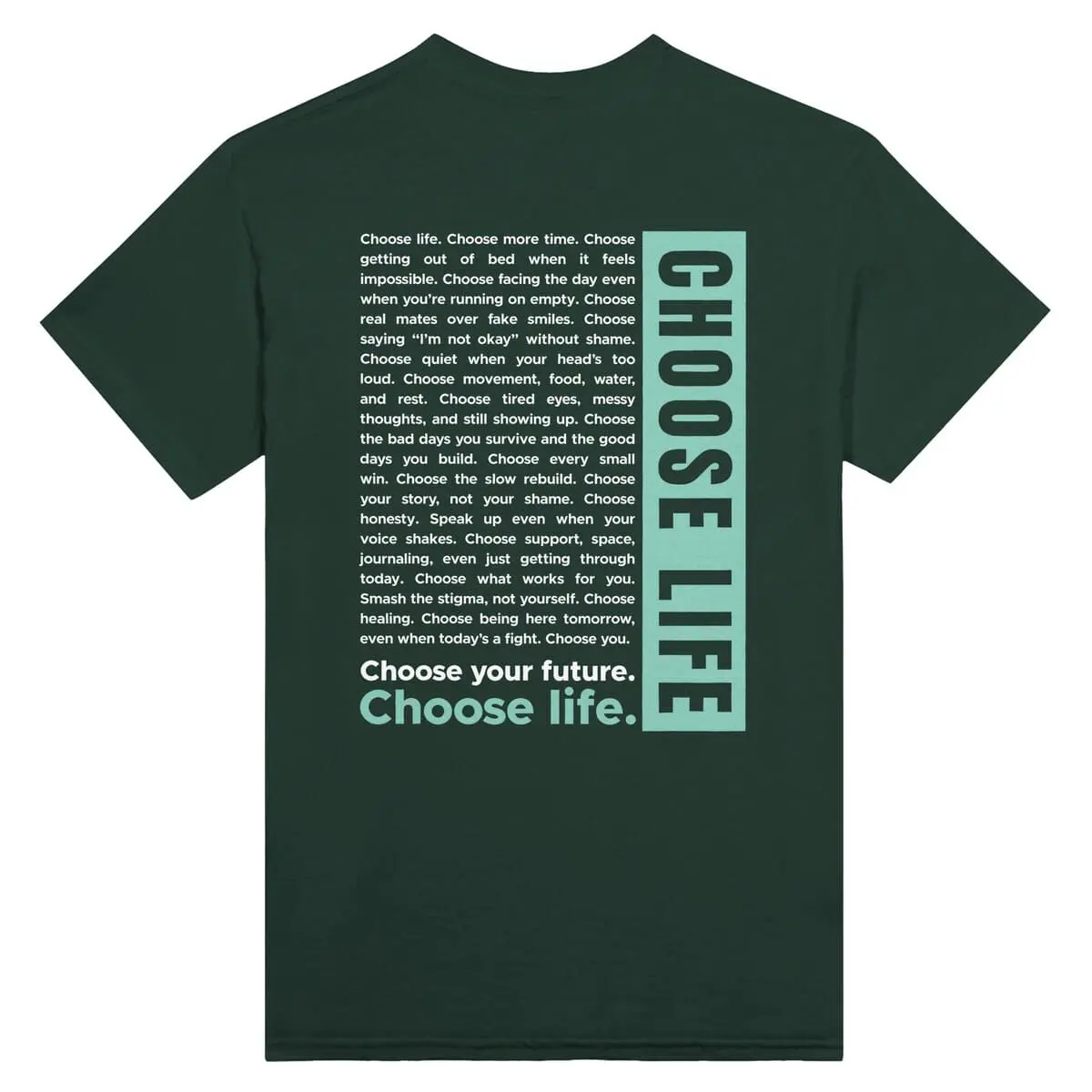 - Front: “CHOOSE LIFE” in bold block capitals.