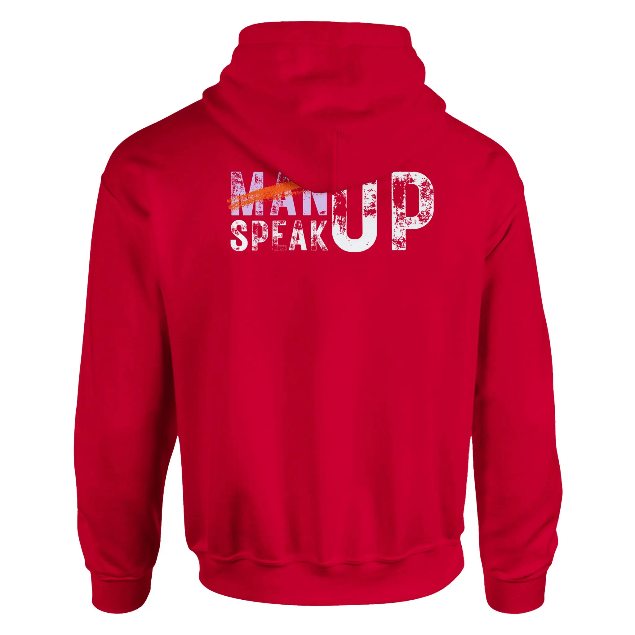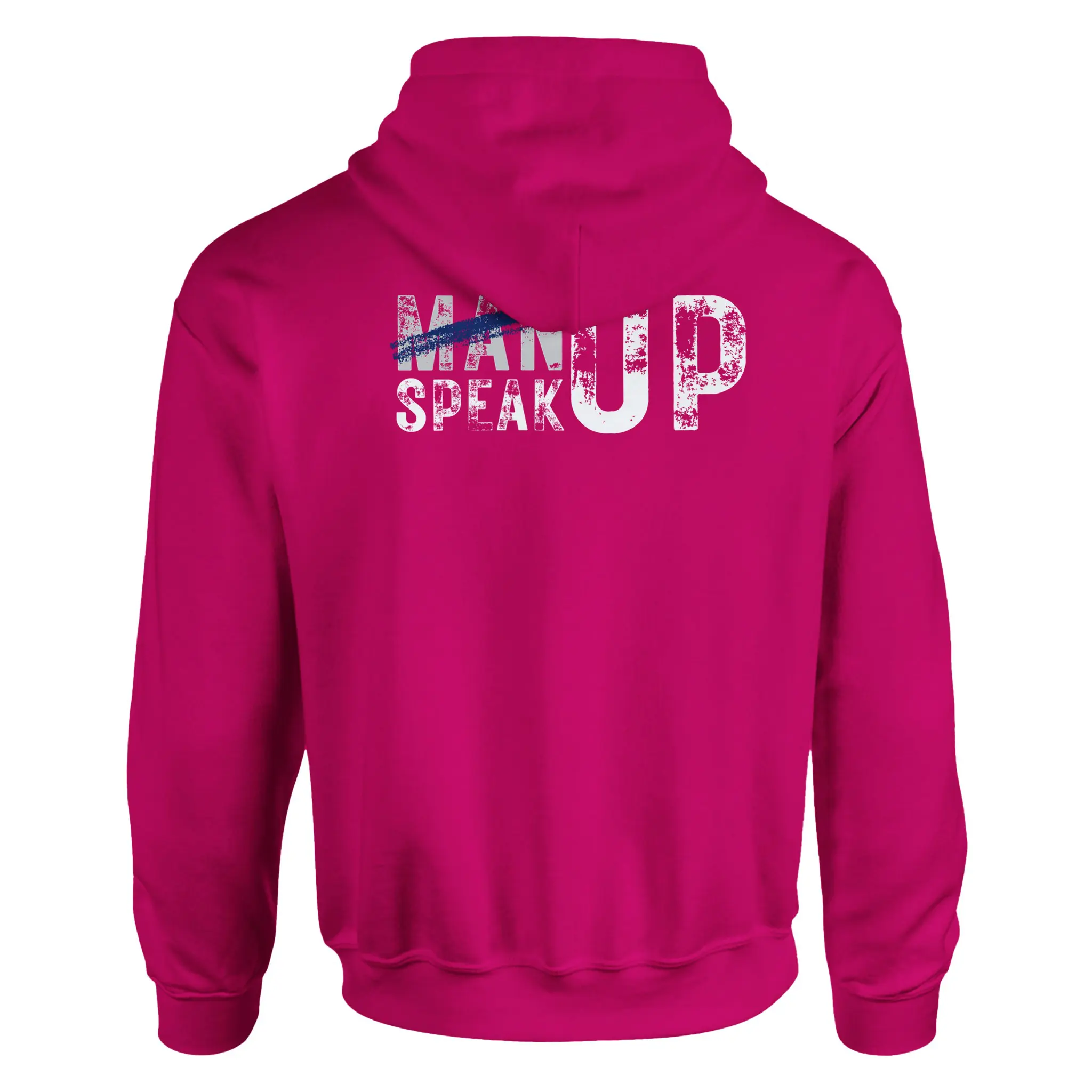 Don’t Man Up Speak Up Hoodie features the signature full-back message with a clean MMH front logo. Crafted for comfort, built to spark conversations, and available in Classic Colours for effortless everyday wear.