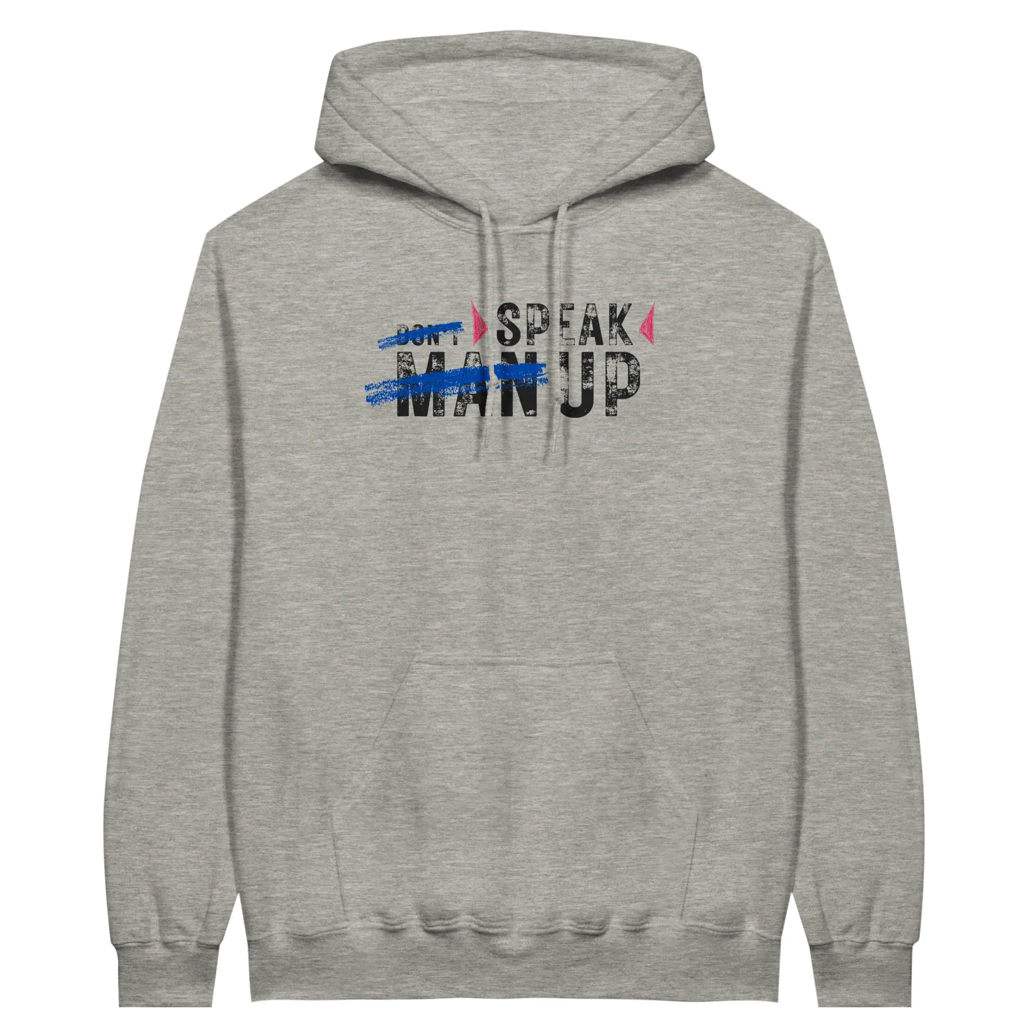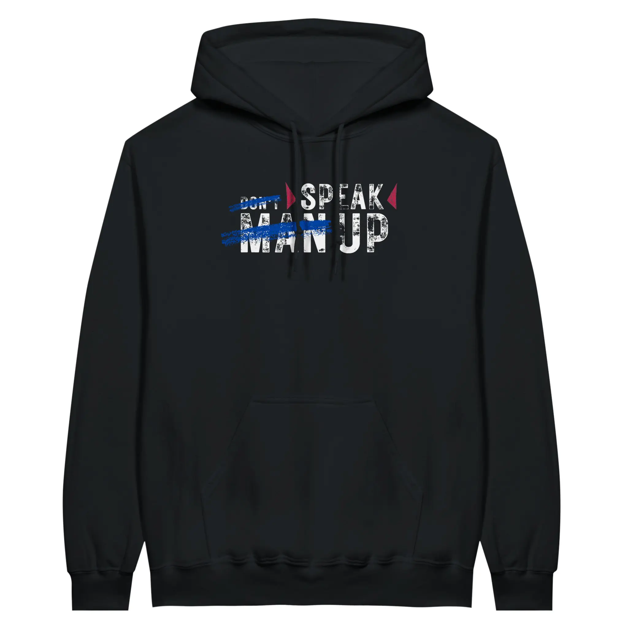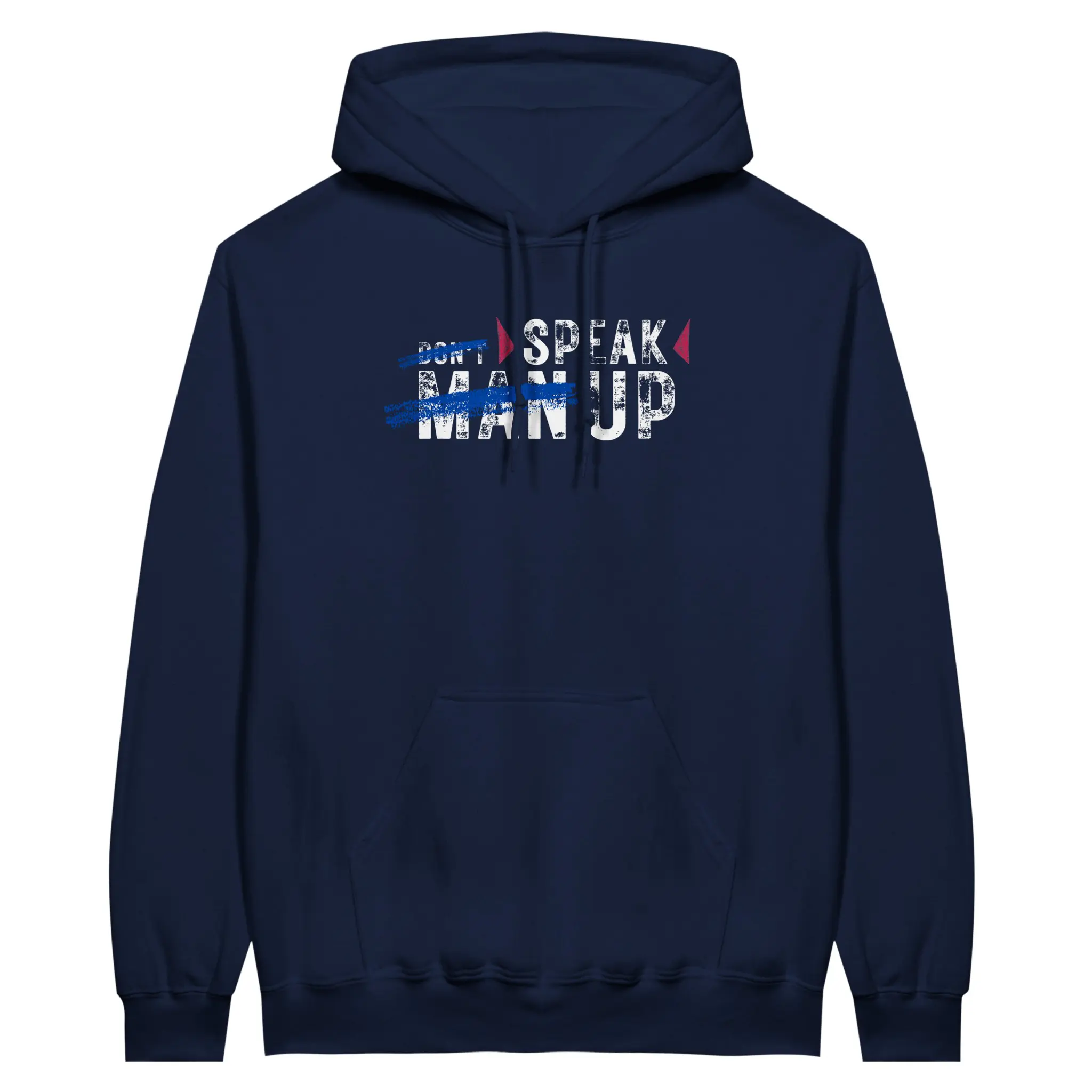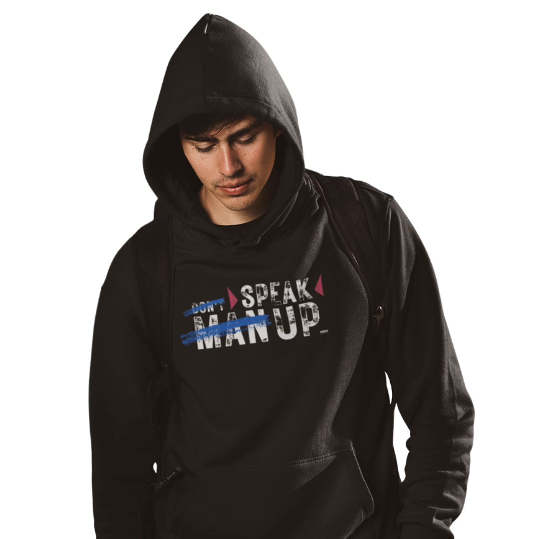 The old advice is dead. The Don’t Man Up Speak Up Hoodie is for the men who are done with suffering in silence. Featuring the signature distressed typography and blue strike-through, this hoodie is a physical reminder that speaking out is the ultimate act of courage.