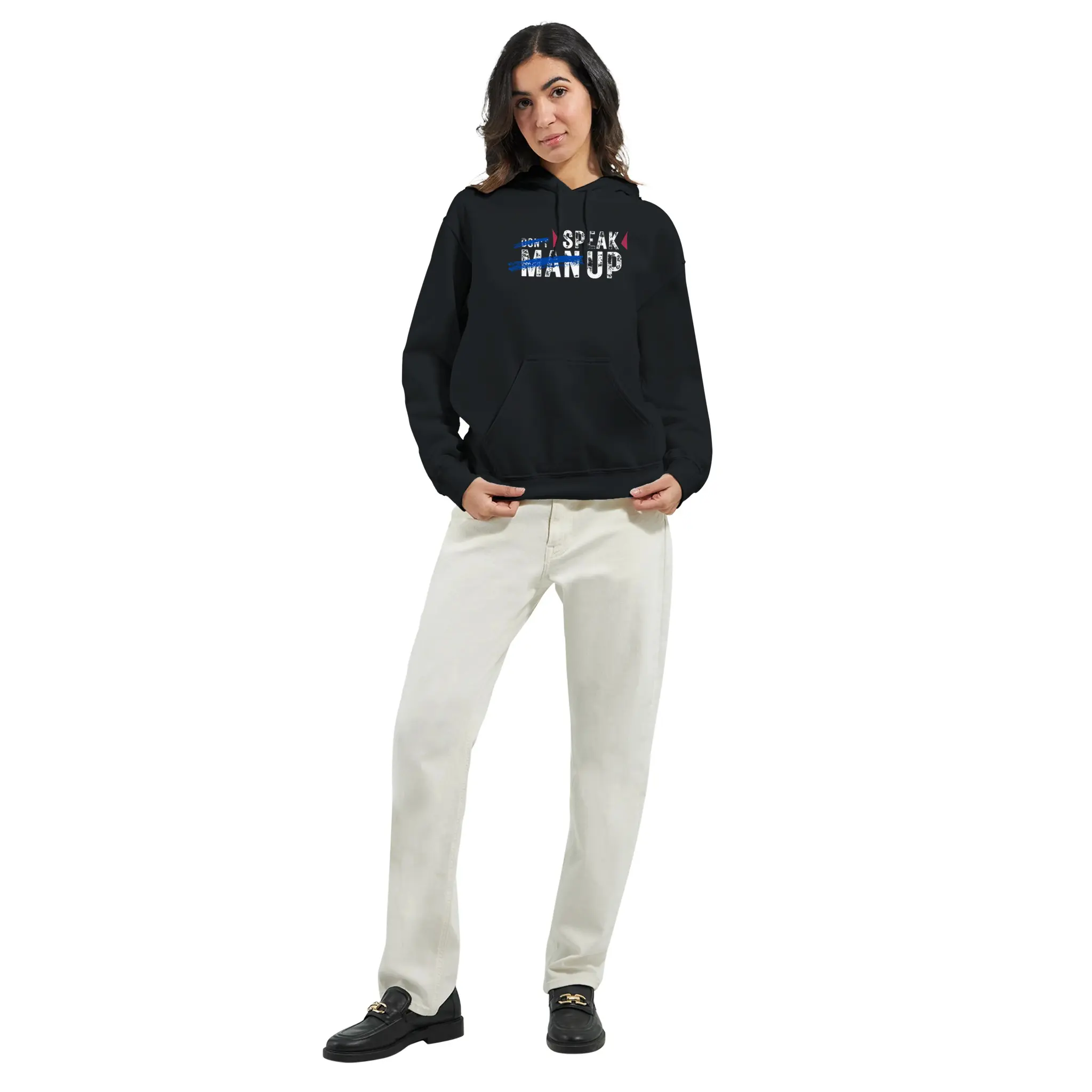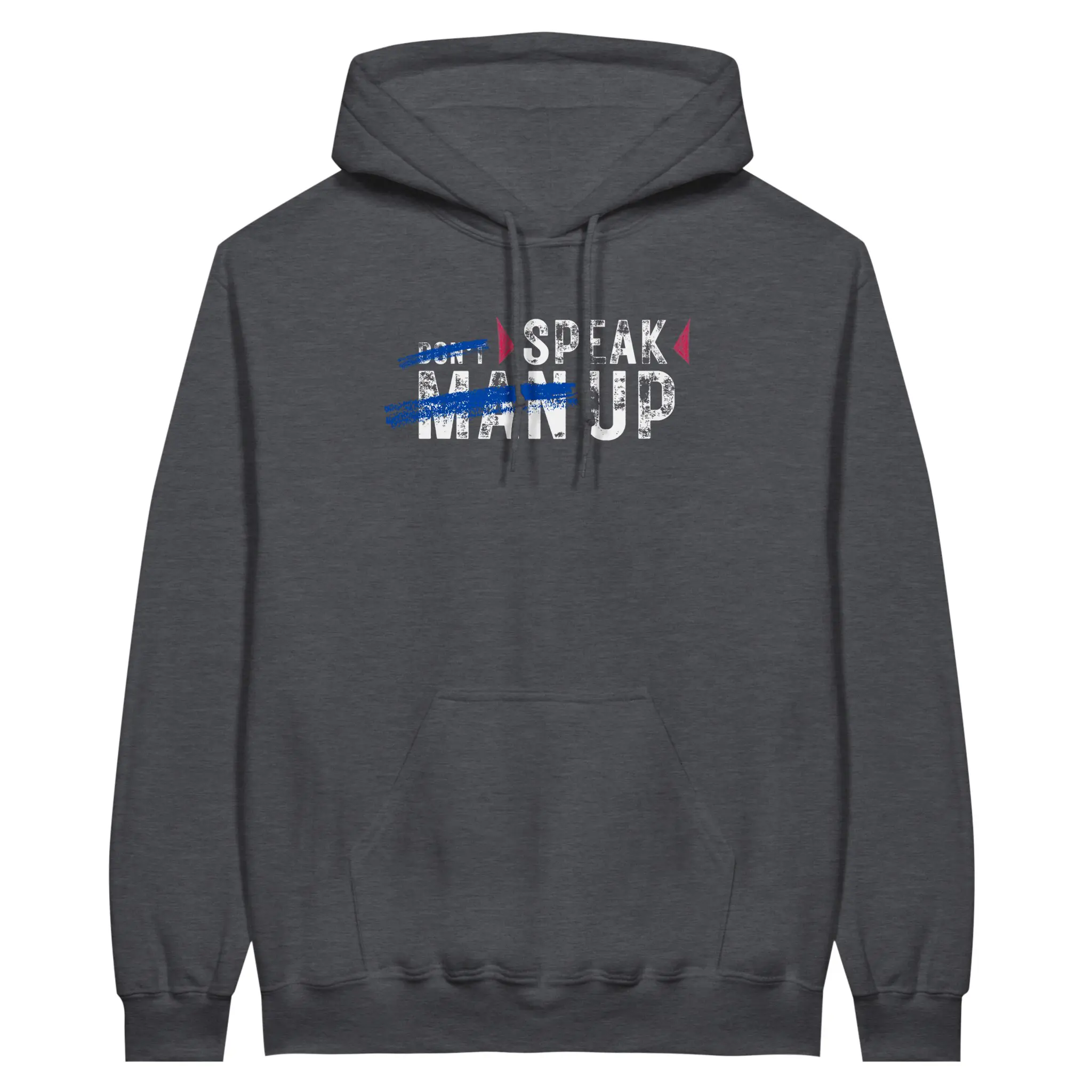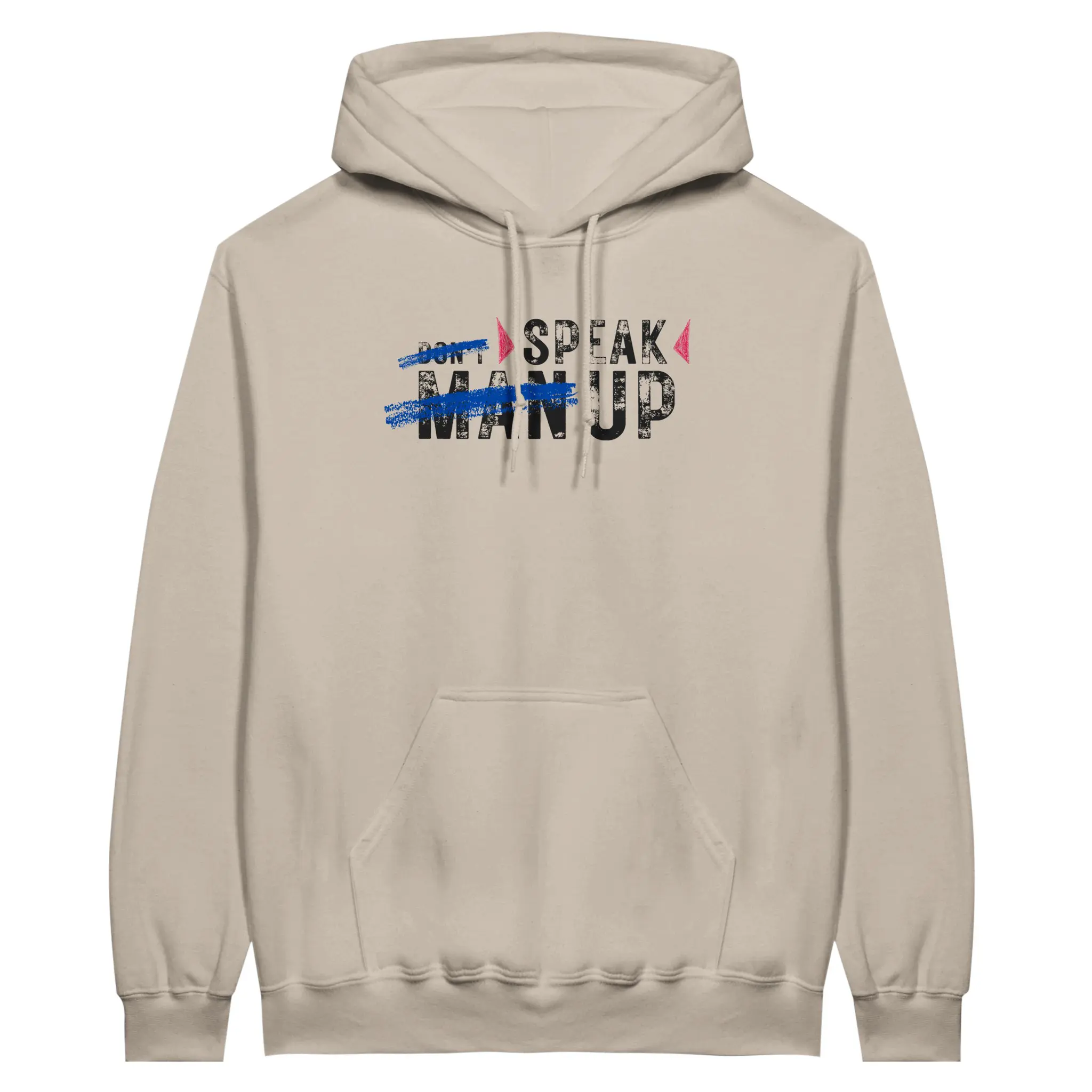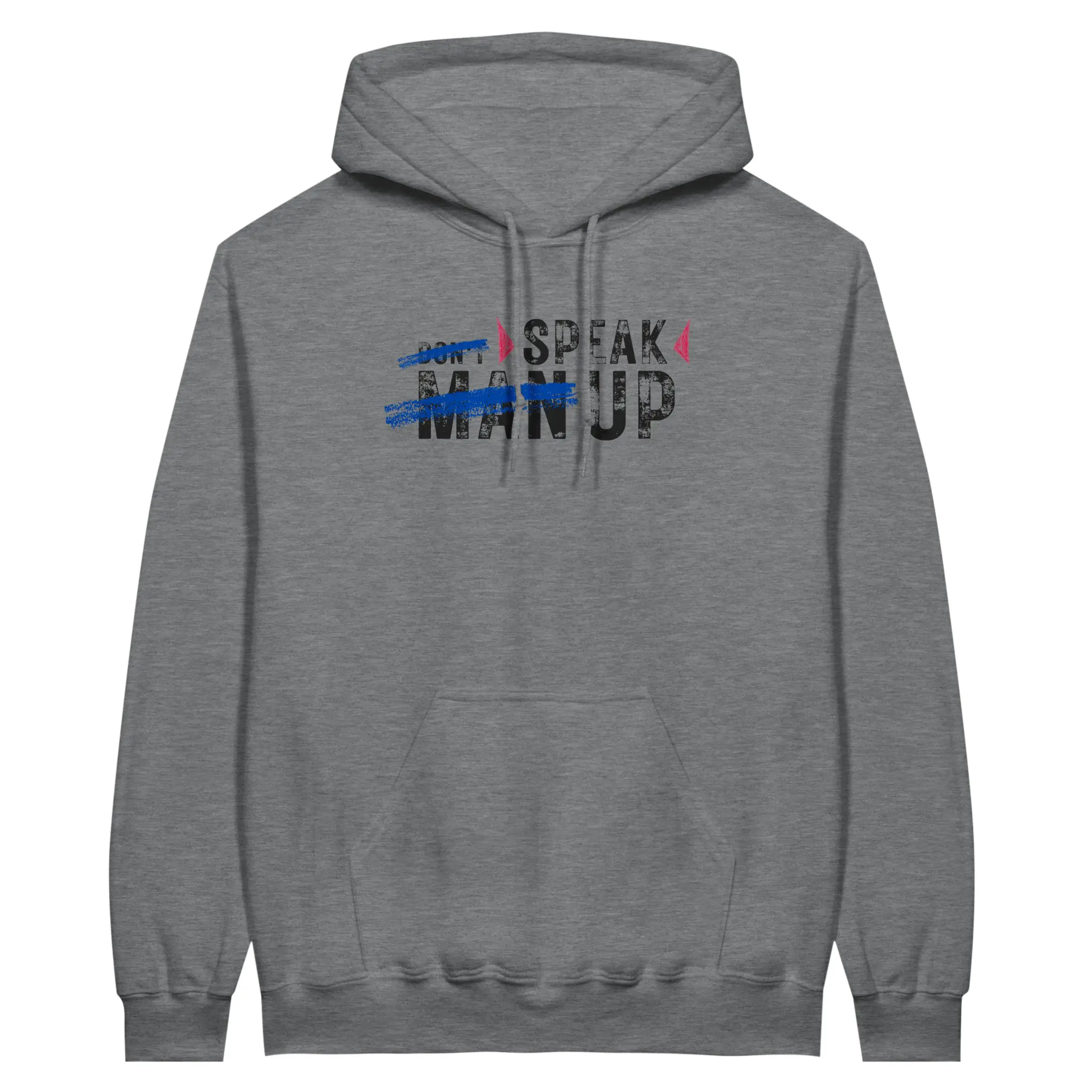 The old advice is dead. The Don’t Man Up Speak Up Hoodie is for the men who are done with suffering in silence. Featuring the signature distressed typography and blue strike-through, this hoodie is a physical reminder that speaking out is the ultimate act of courage.