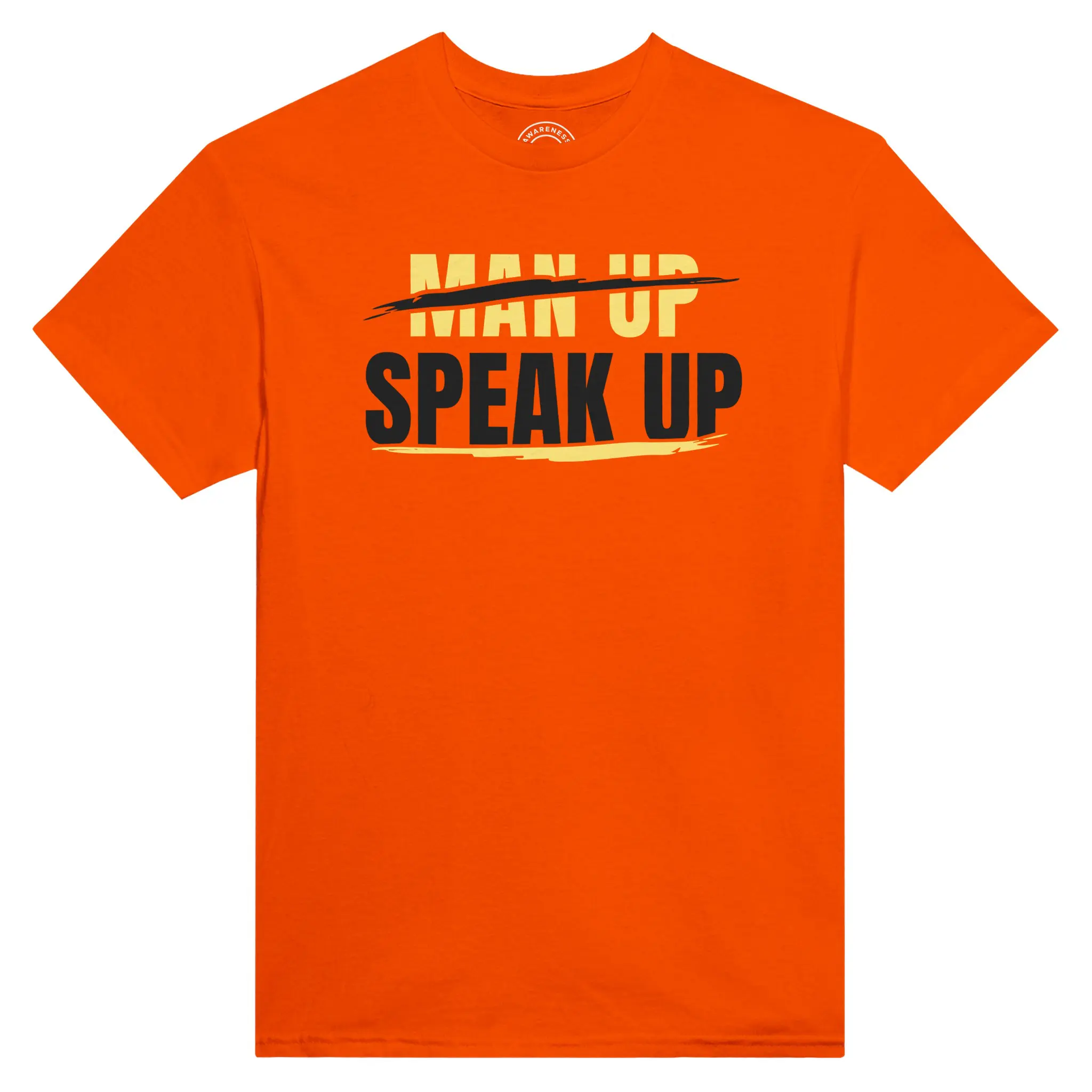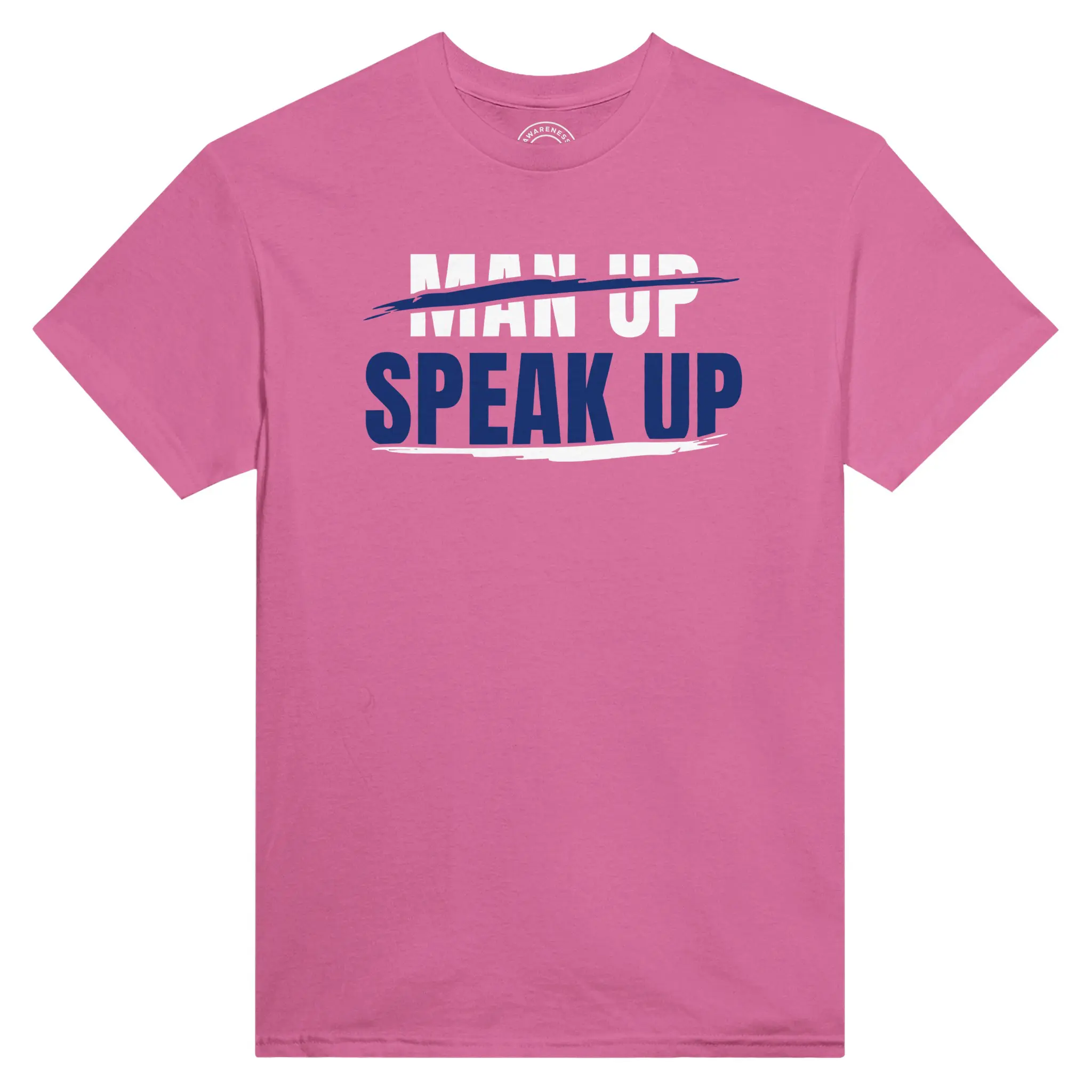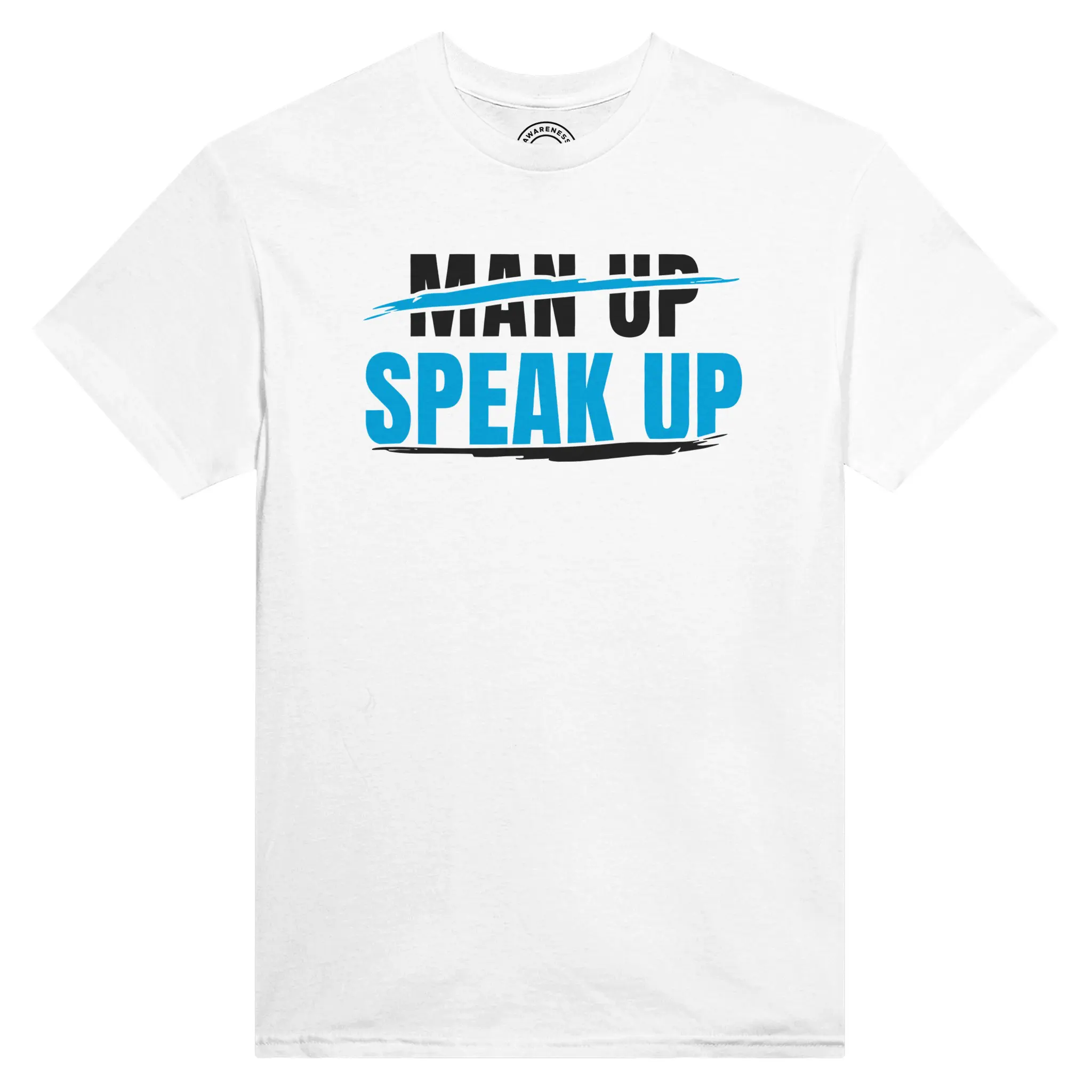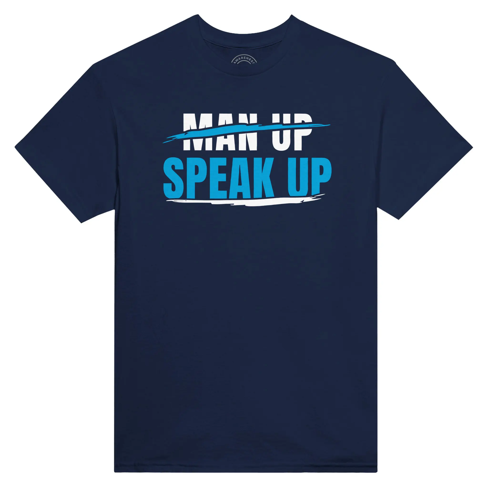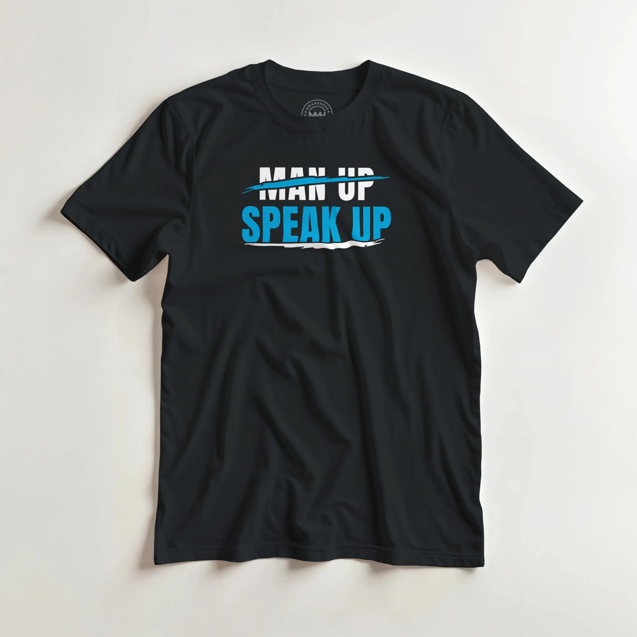The most dangerous phrase in the dictionary is “Man Up.” This statement tee rejects the silence and emphasises the solution. It features a bold graphic where Man Up is crossed out and Speak Up is underlined—a visual reminder that true strength isn’t about holding it in; it’s about letting it out.