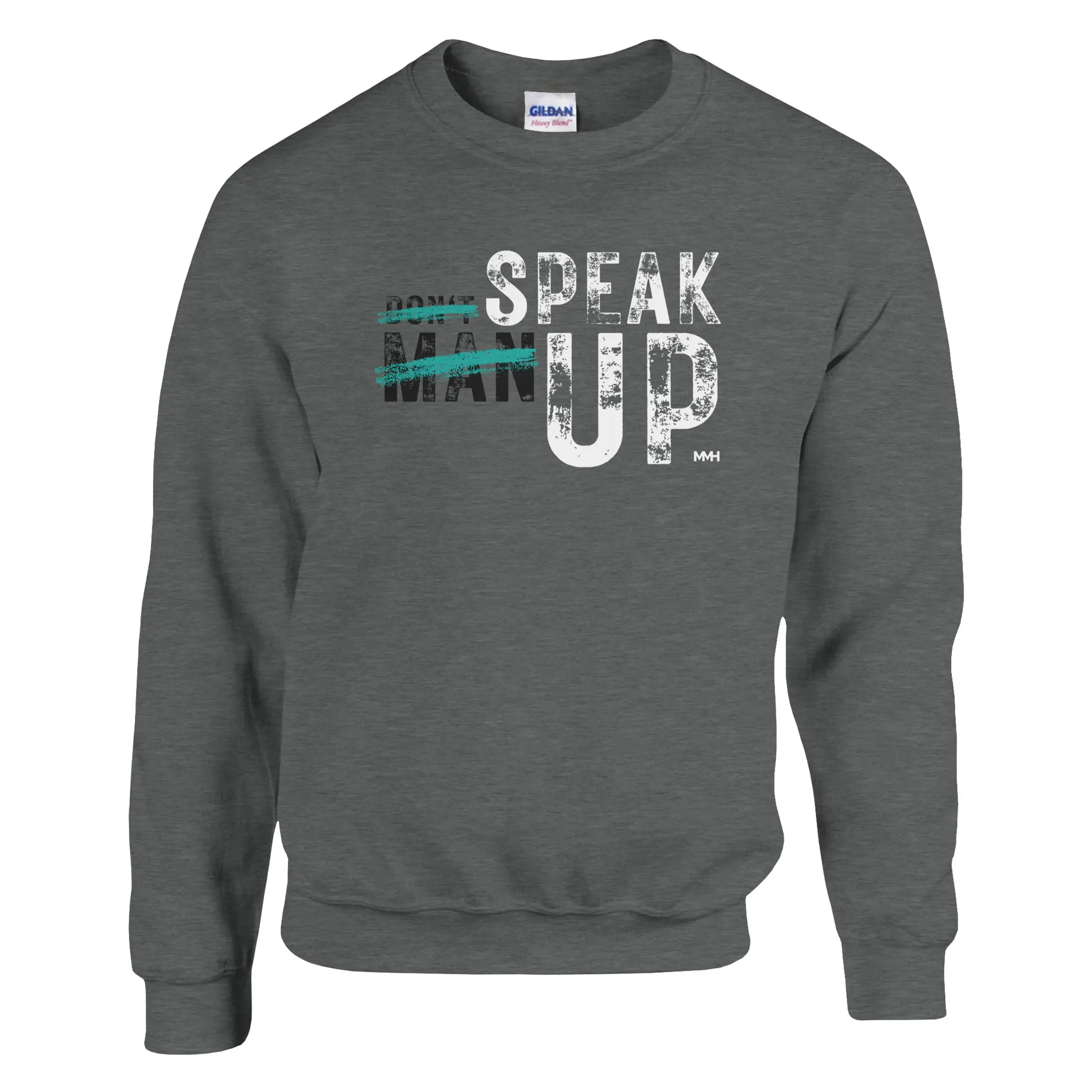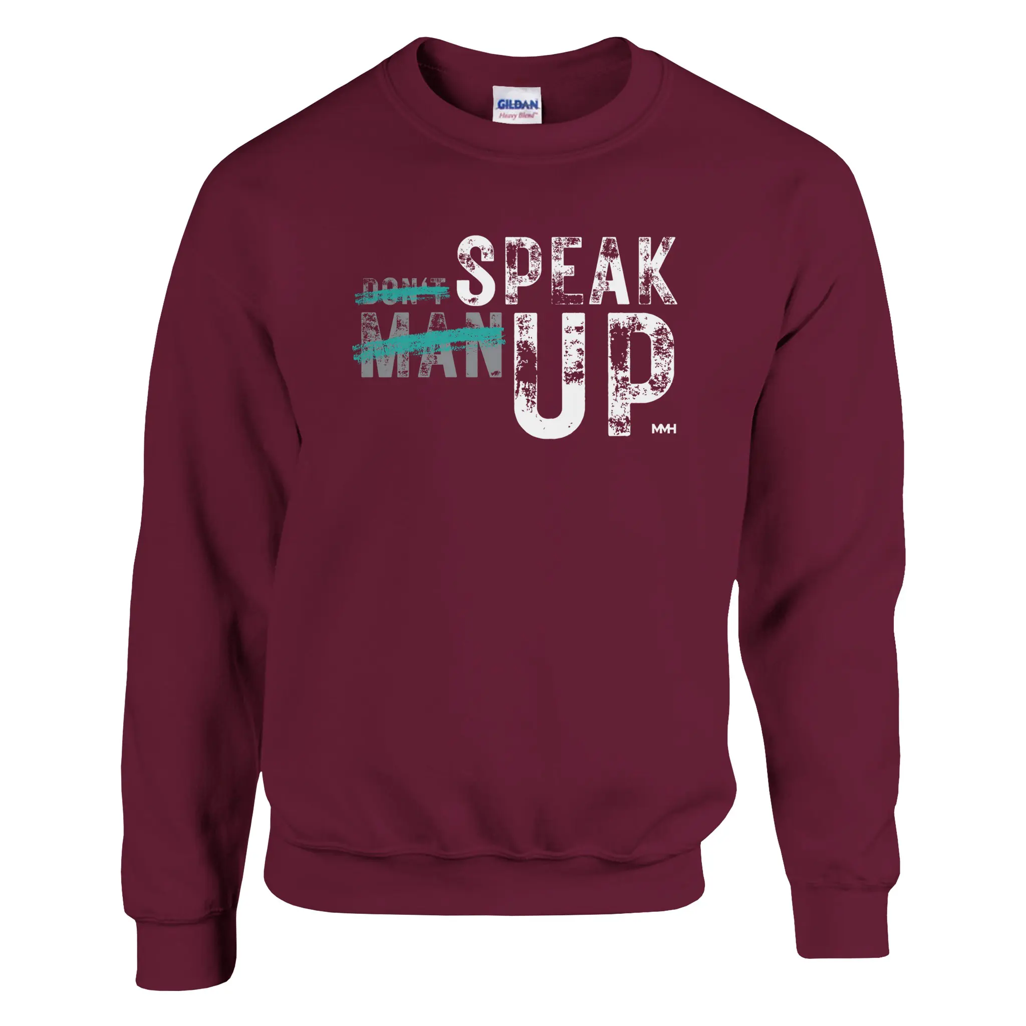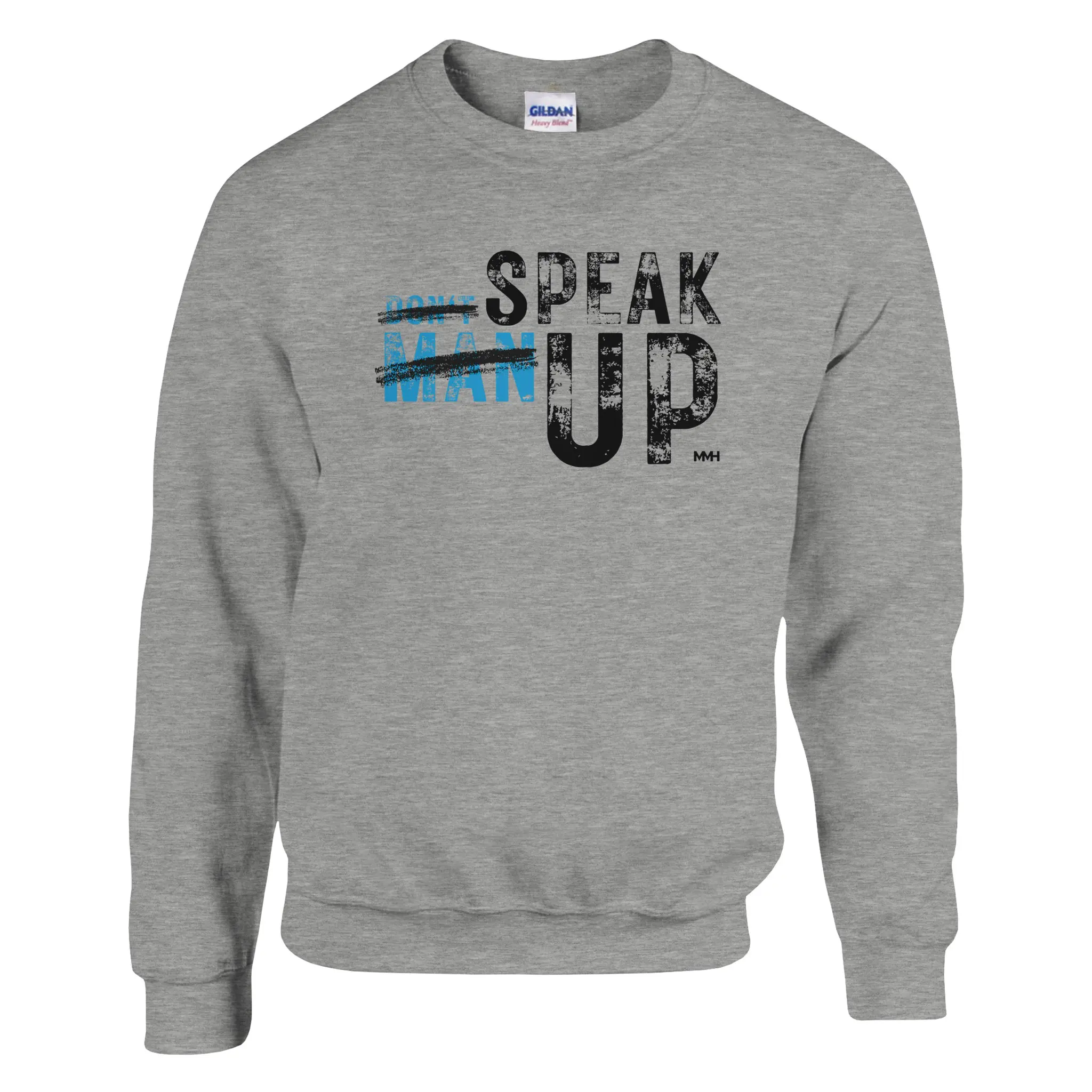 Don’t “Man Up” – Speak Up 2.0 is a powerful mental health awareness sweatshirt designed to challenge stigma and support open conversations. With “Man Up” slashed out and a bold, distressed finish, this statement piece encourages emotional honesty and strength through vulnerability.