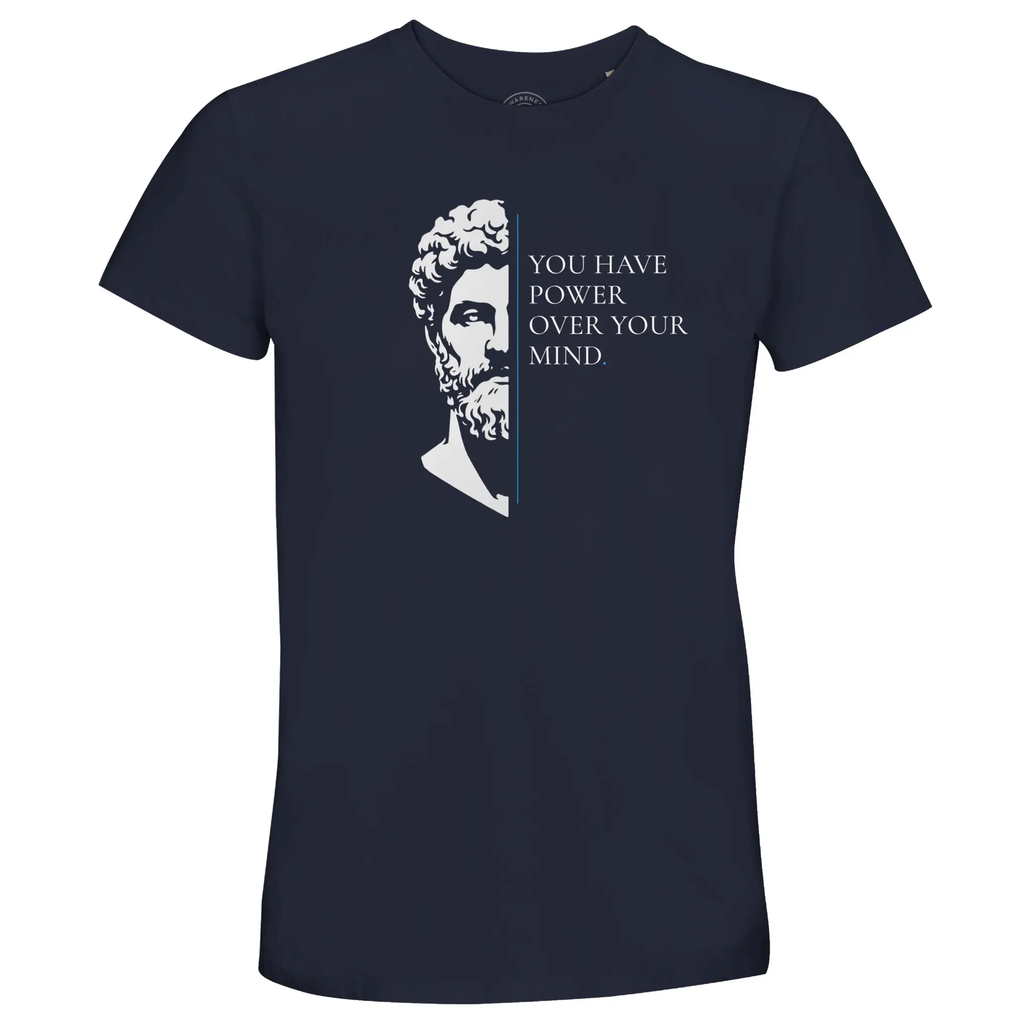 External events are beyond your control. Your response to them is not. This mid-range eco-conscious tee features a split-graphic of Marcus Aurelius and his most enduring lesson: “You Have Power Over Your Mind.” A wearable reminder that true strength starts internally.