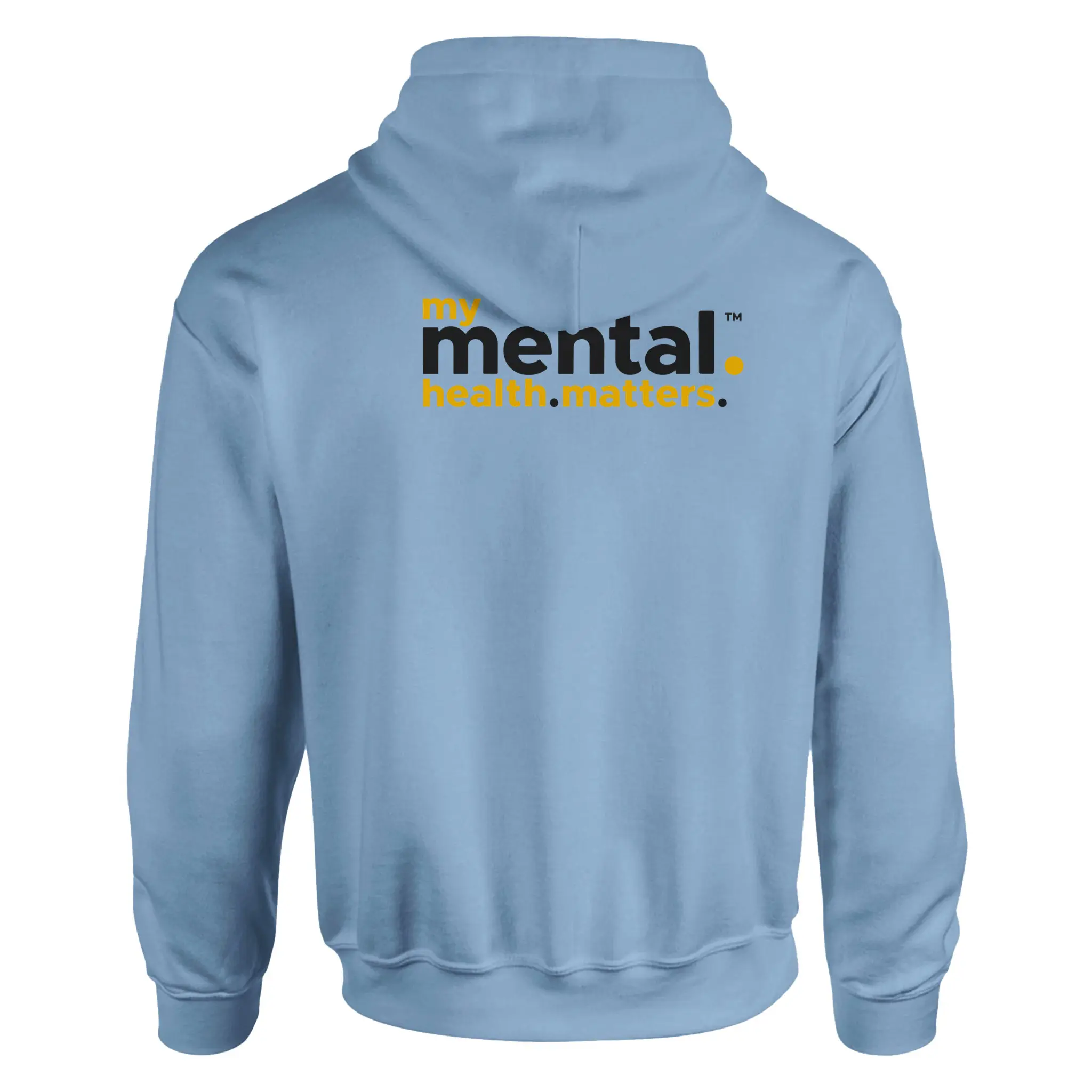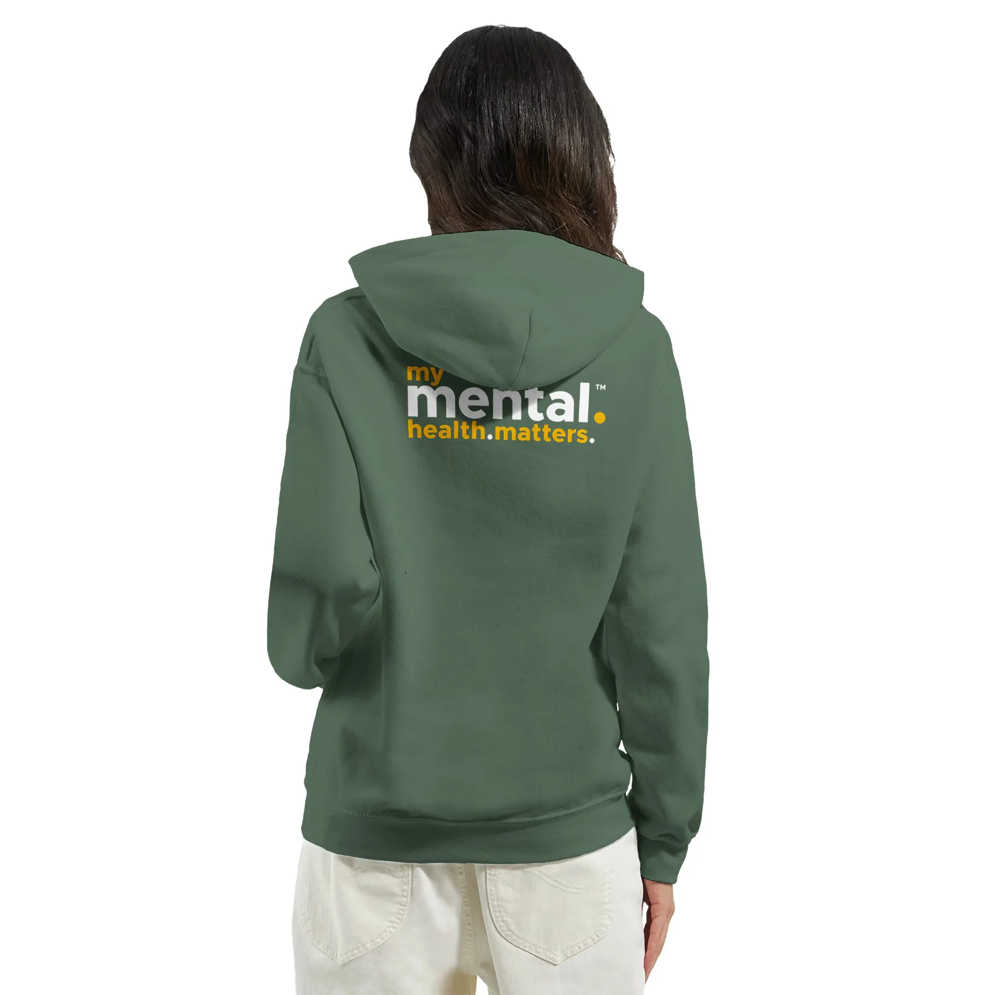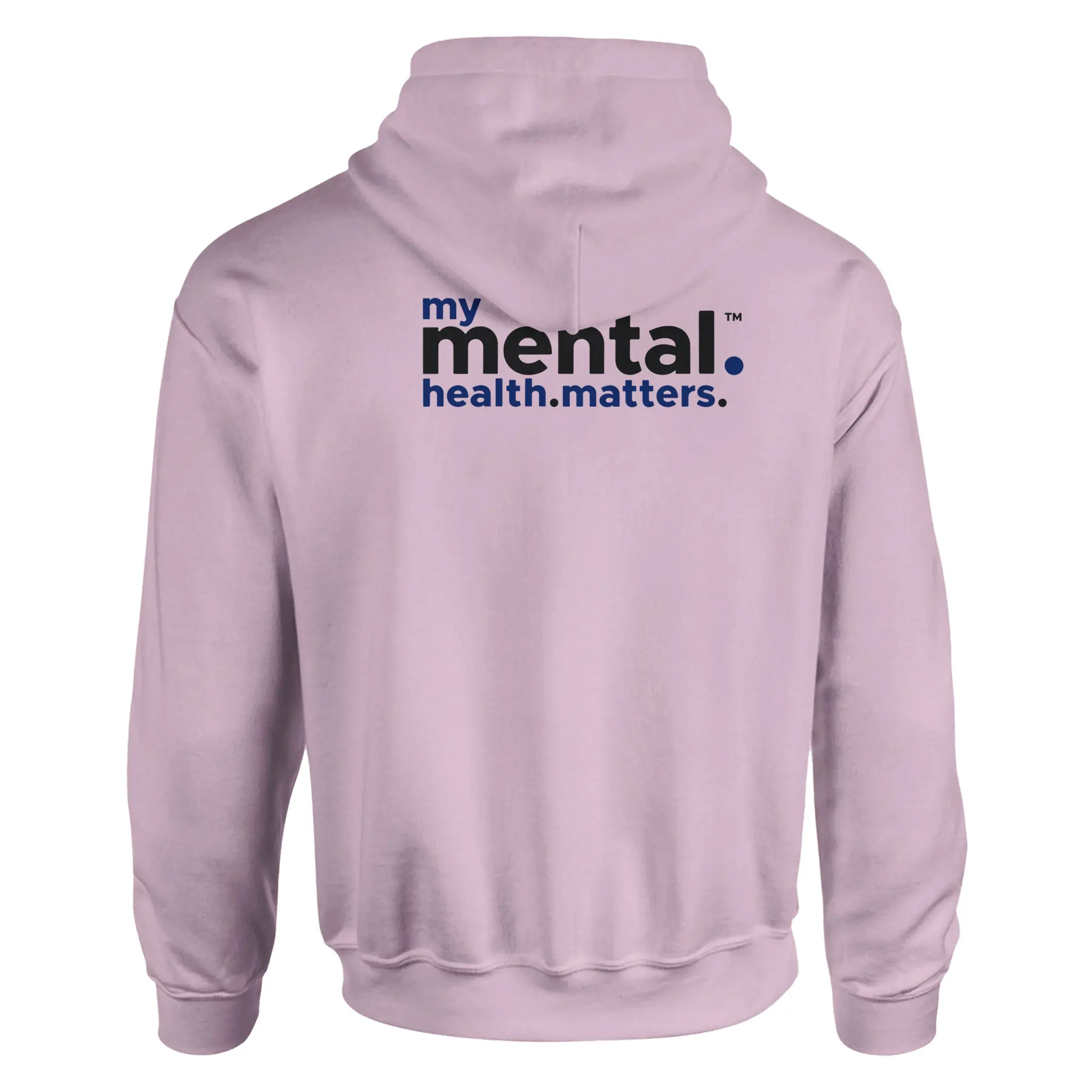 The Advocate Hoodie (Purpose Edition) features the full, non-negotiable message—”My mental. health. matters.”—prominently printed on the upper back, turning you into a gentle, confident force for good.