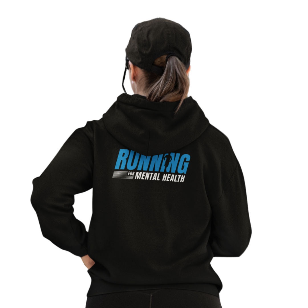 - Back Print: “Running For Mental Health” in a high-contrast, dynamic graphic.