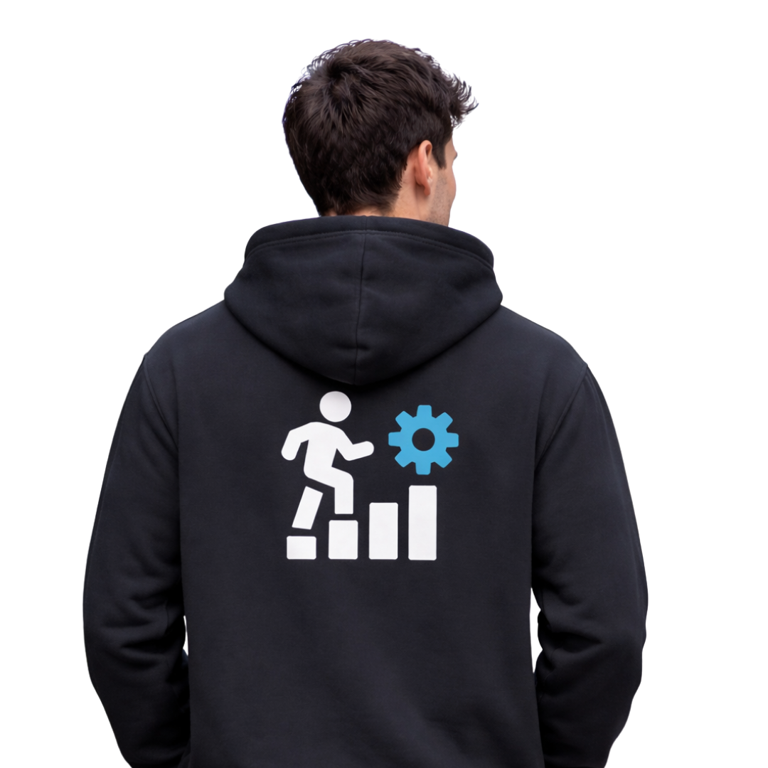 The Small Steps, Big Changes ICON Hoodie is a reminder that progress is built through consistency, not pressure. The stepped icon and gear symbol represent momentum — small actions turning steadily into meaningful change.