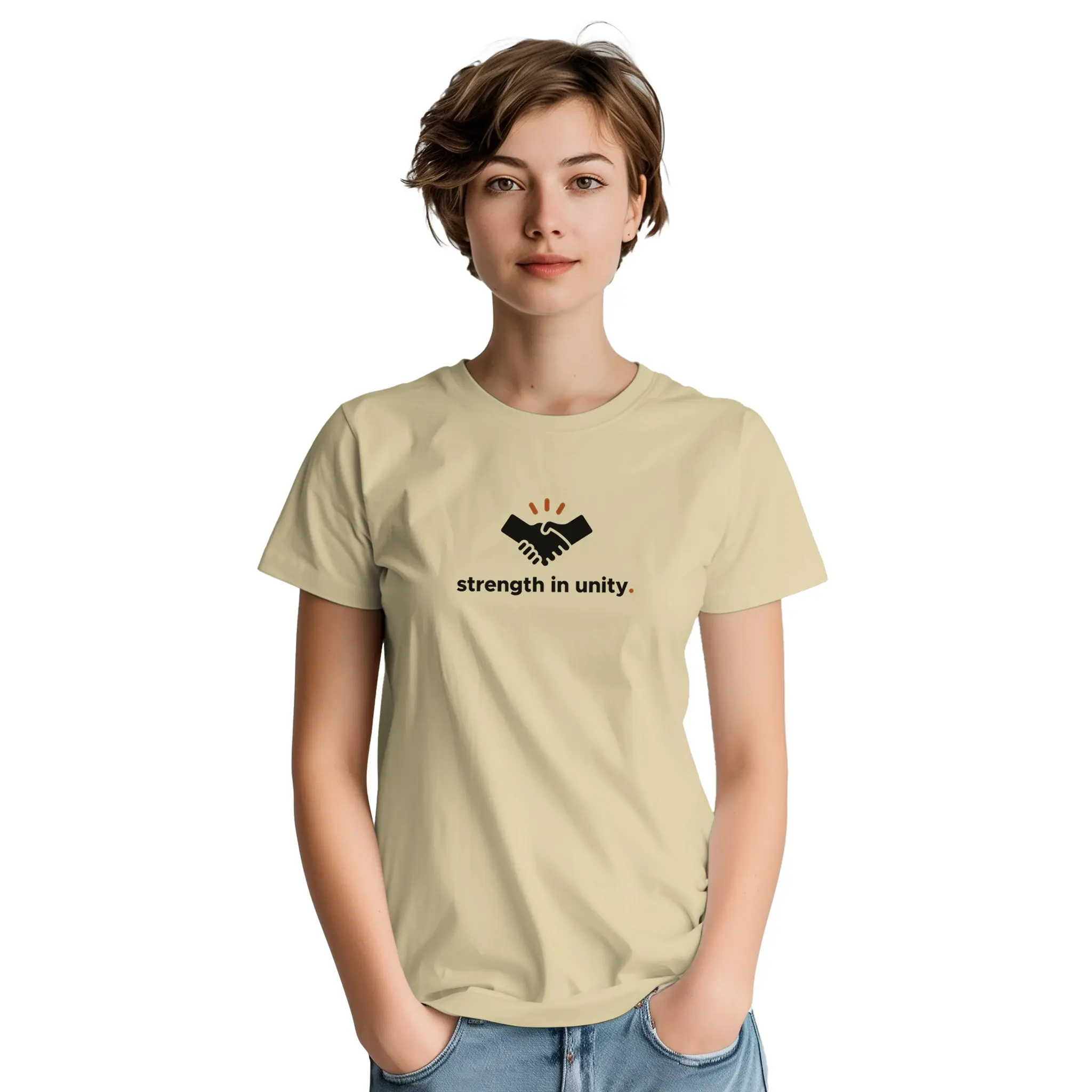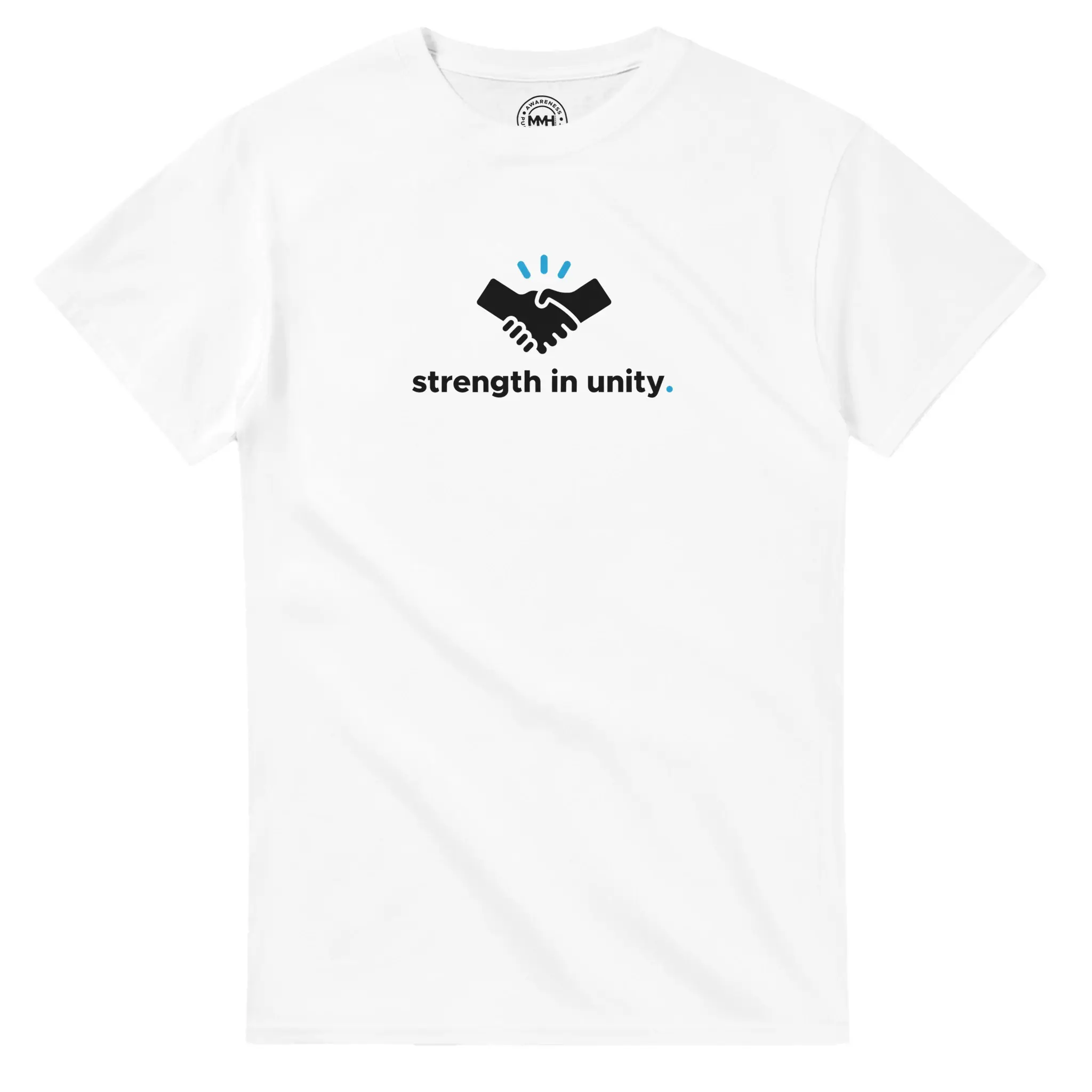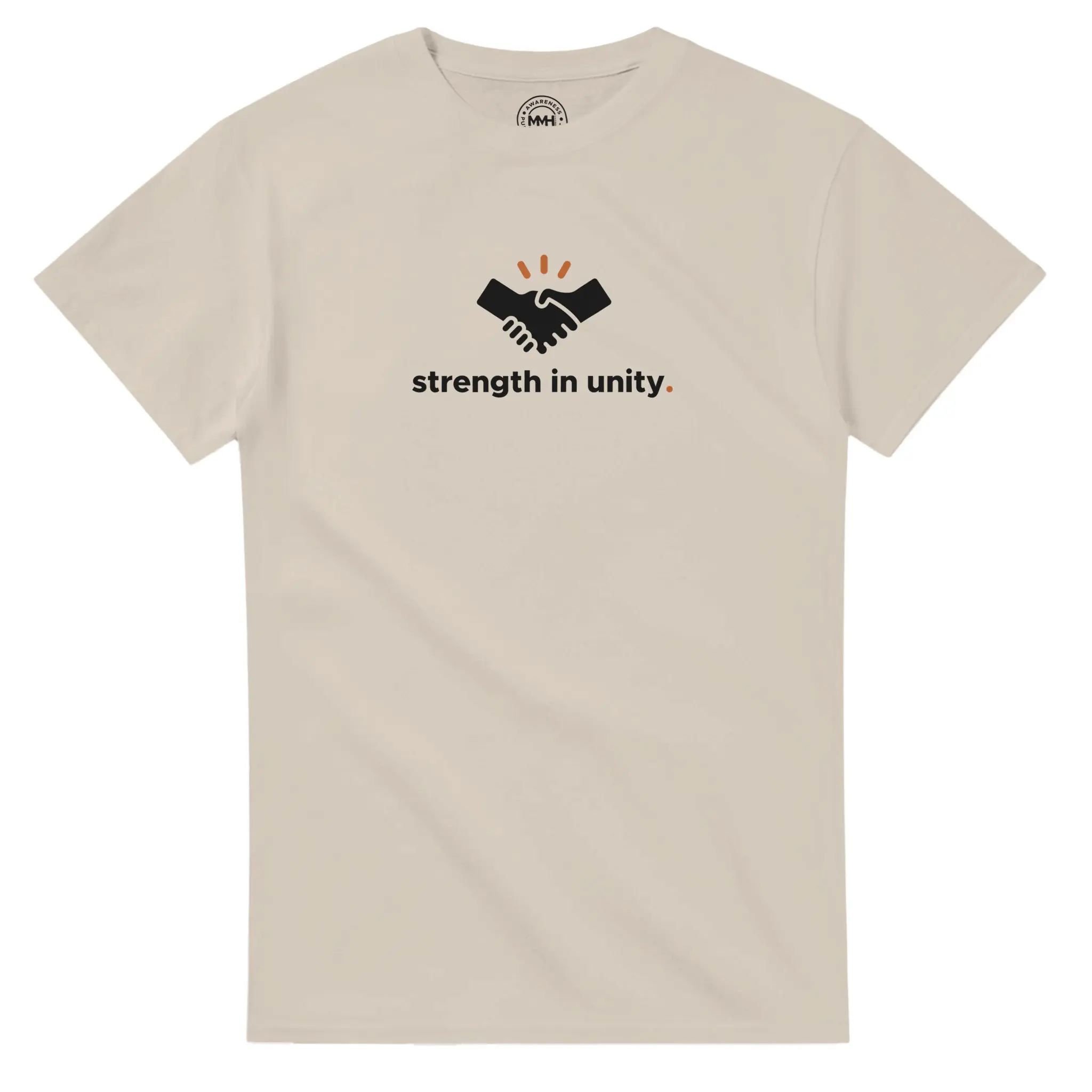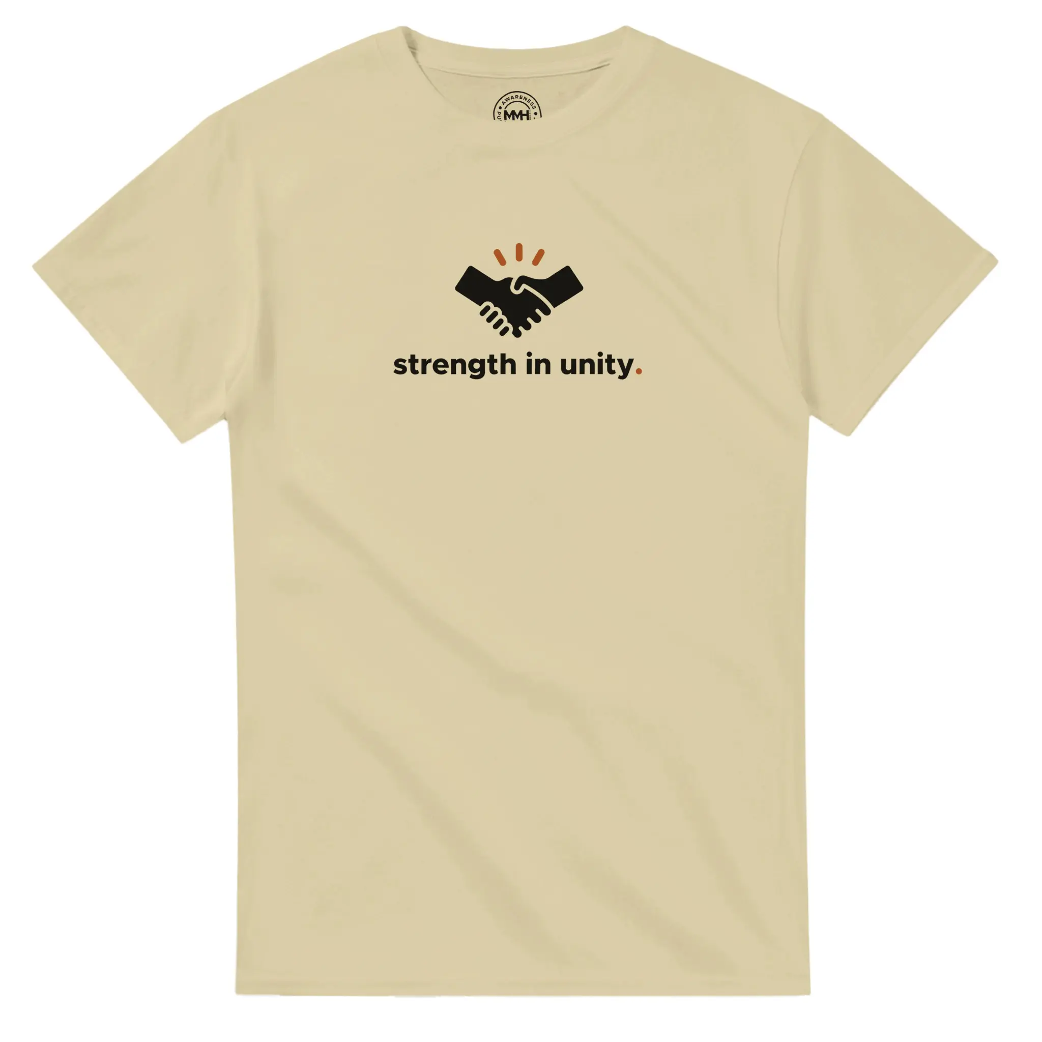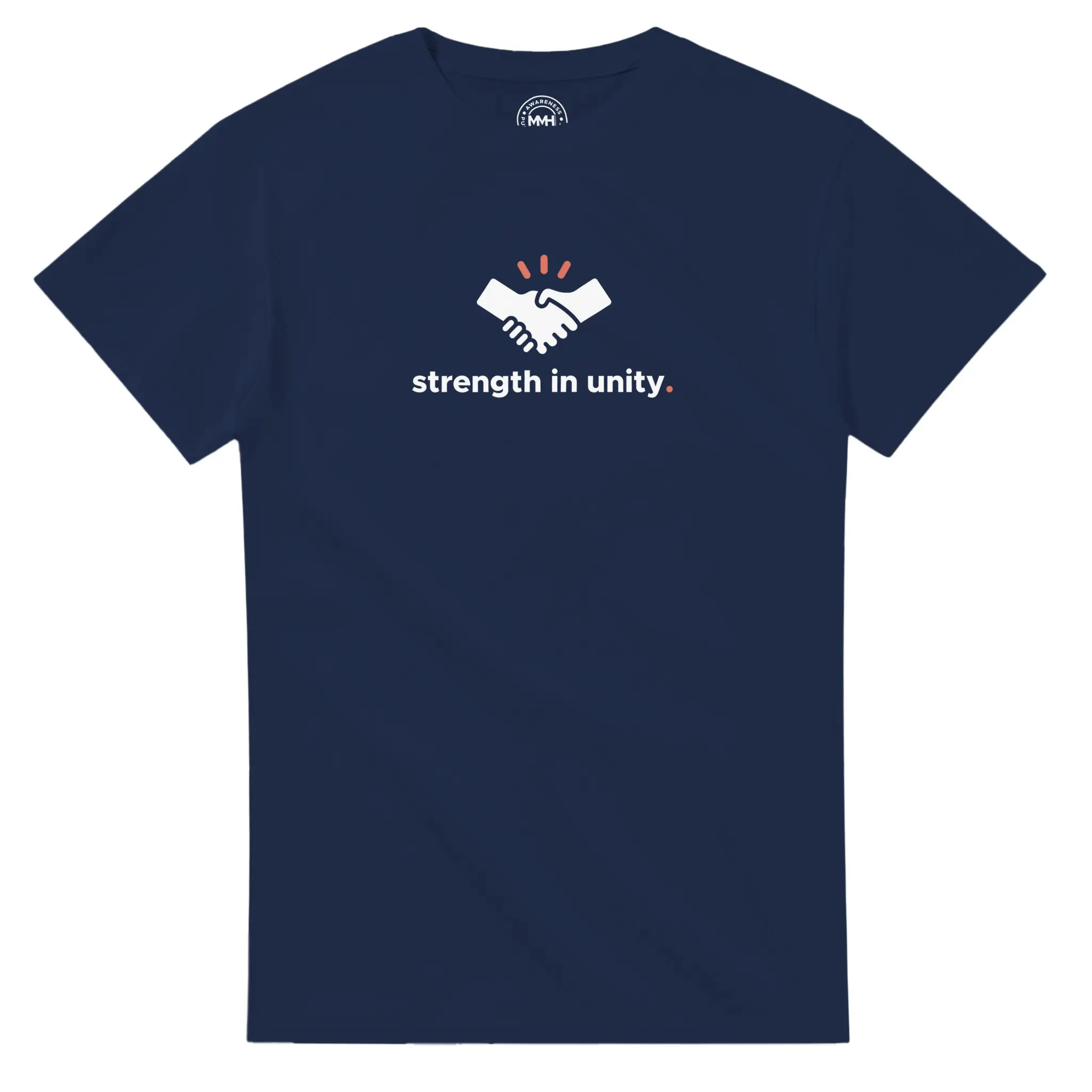 Featuring a handshake icon and “strength in unity.” text. A symbol of togetherness and mutual support.