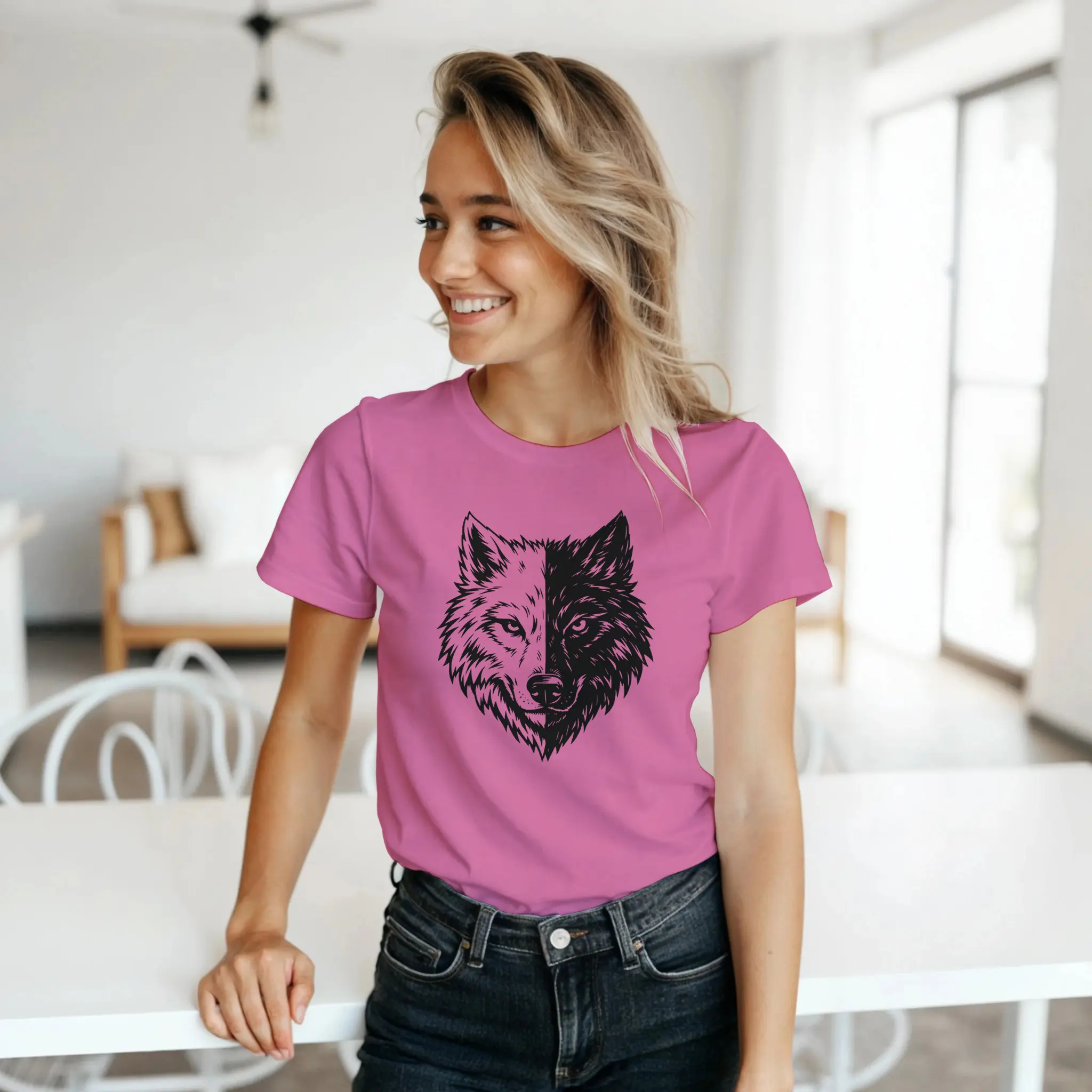 Duality isn’t a concept; it’s a daily experience. This fitted version of the Two Wolves graphic is designed for the woman who navigates the noise with a quiet, deliberate strength. The split imagery serves as a constant reminder that your headspace is your most valuable territory. One side represents the pull of chaos—doubt and comparison—while the other represents the clarity of purpose and resilience.