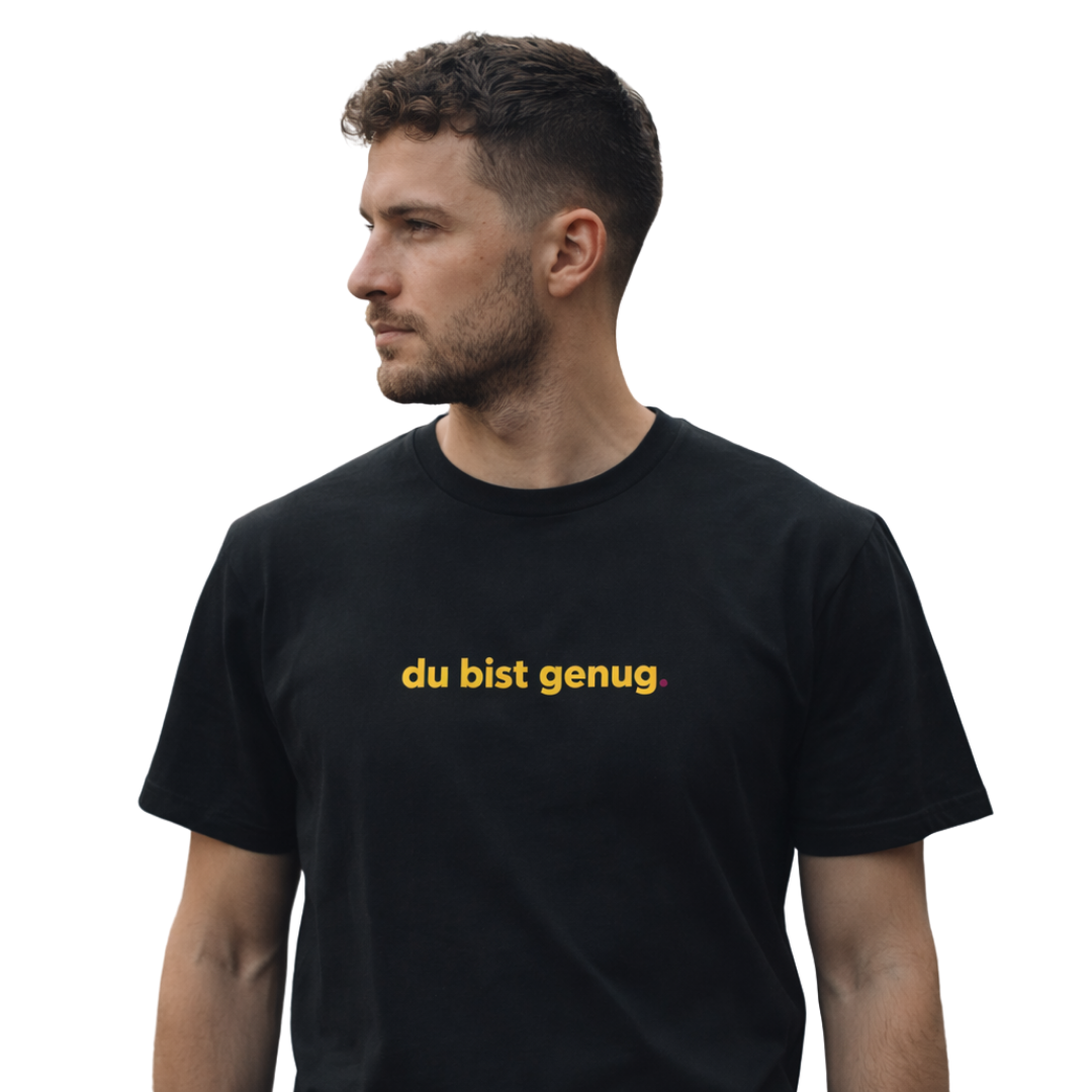 | German | du bist genug. | #ffcc00 (Yellow) | #d00000 (Red) |