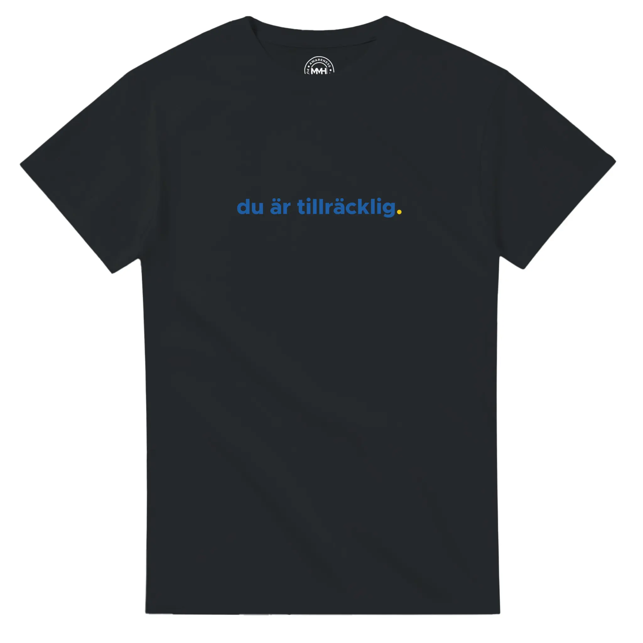 | Swedish | du är tillräcklig. | #005cbf (Blue) | #ffcc00 (Yellow) |