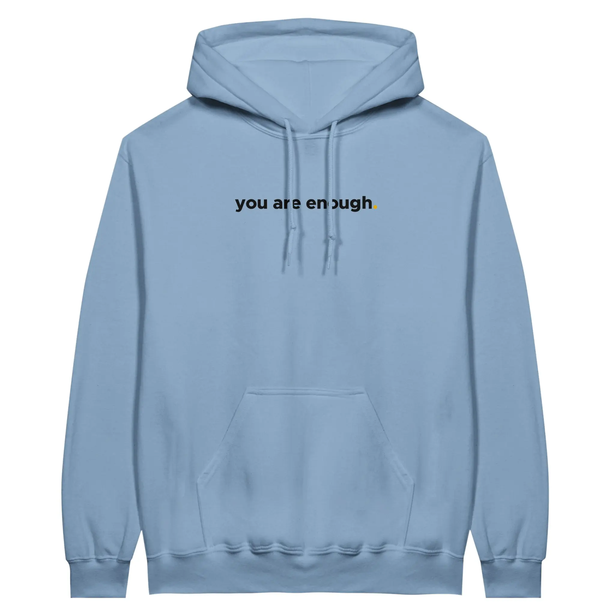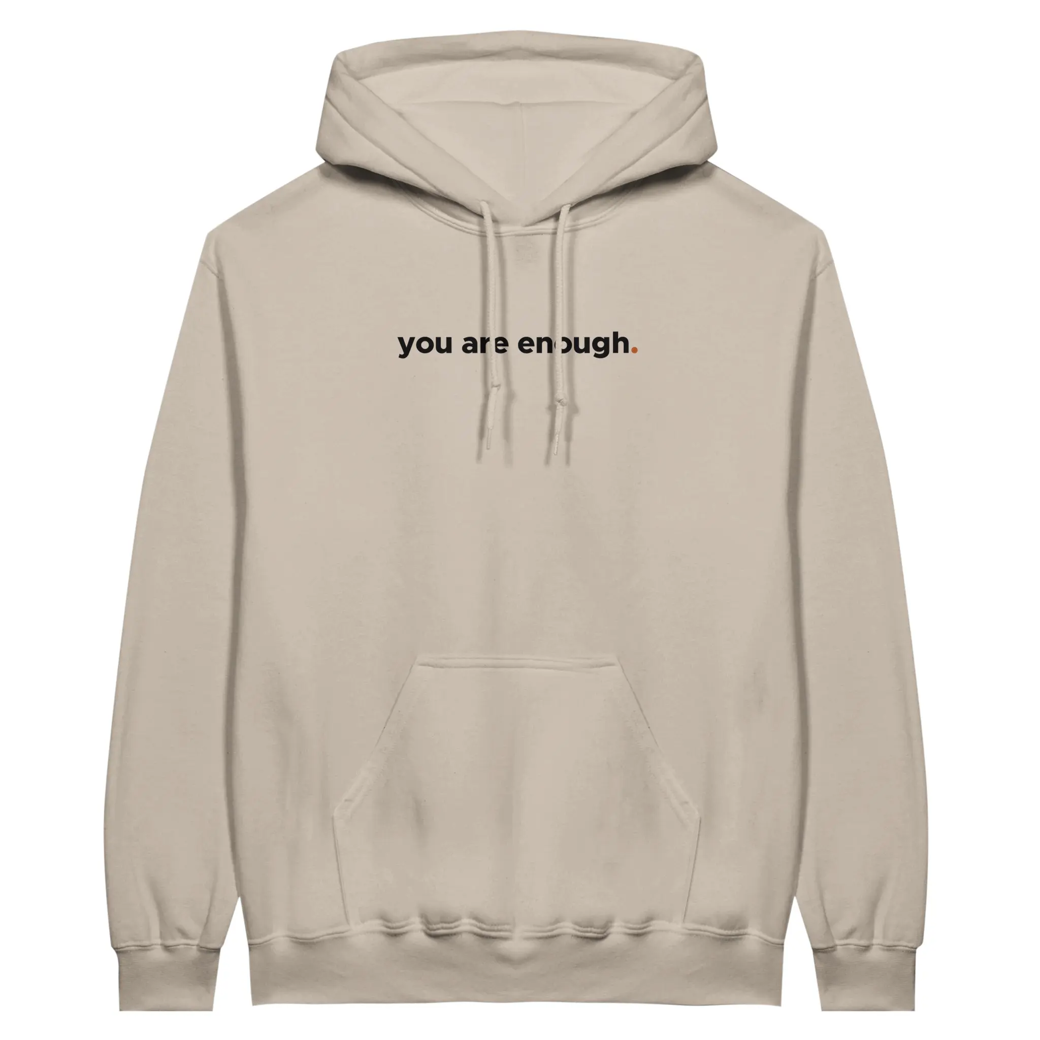 You Are Enough Hoodie – A soft-spoken yet powerful design in calming tones, made to ground you, support reflection, and offer comfort in every moment.