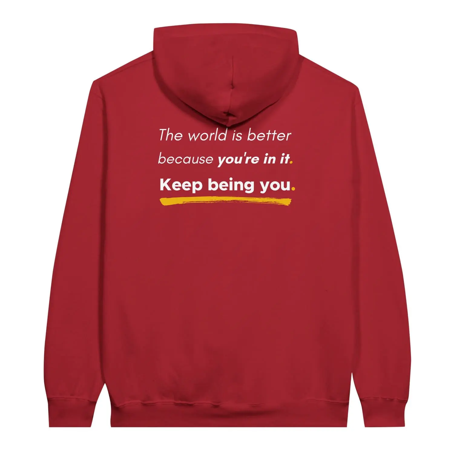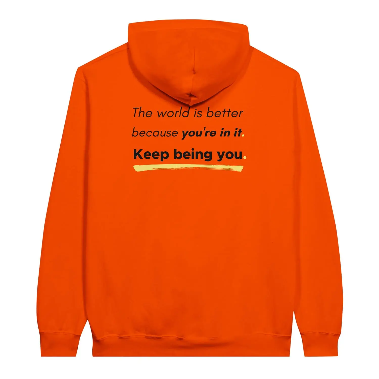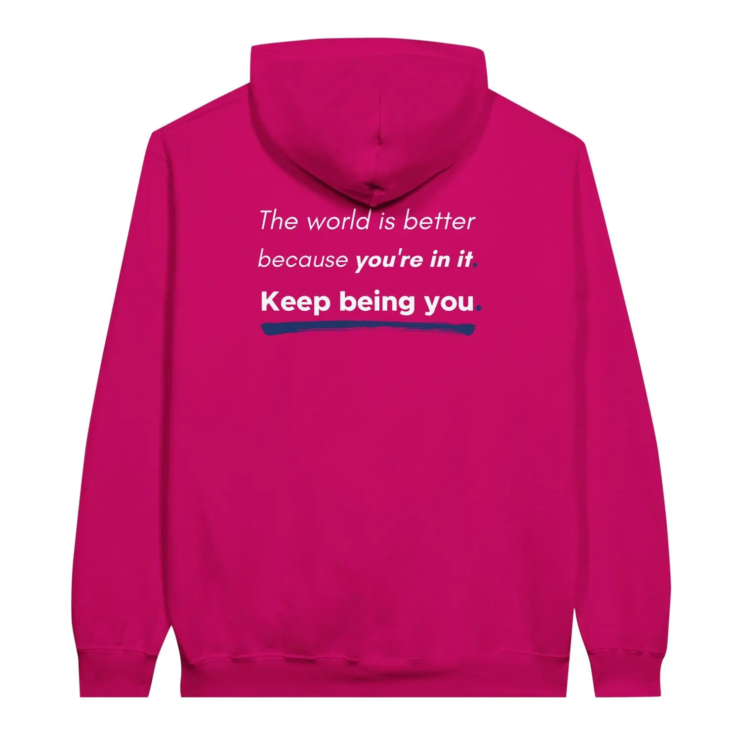 Wear a powerful message of self-acceptance and affirmation with this “You Are Enough” Pullover Hoodie. The reverse positive message reads “The world is better because you’re in it. Keep Being You“