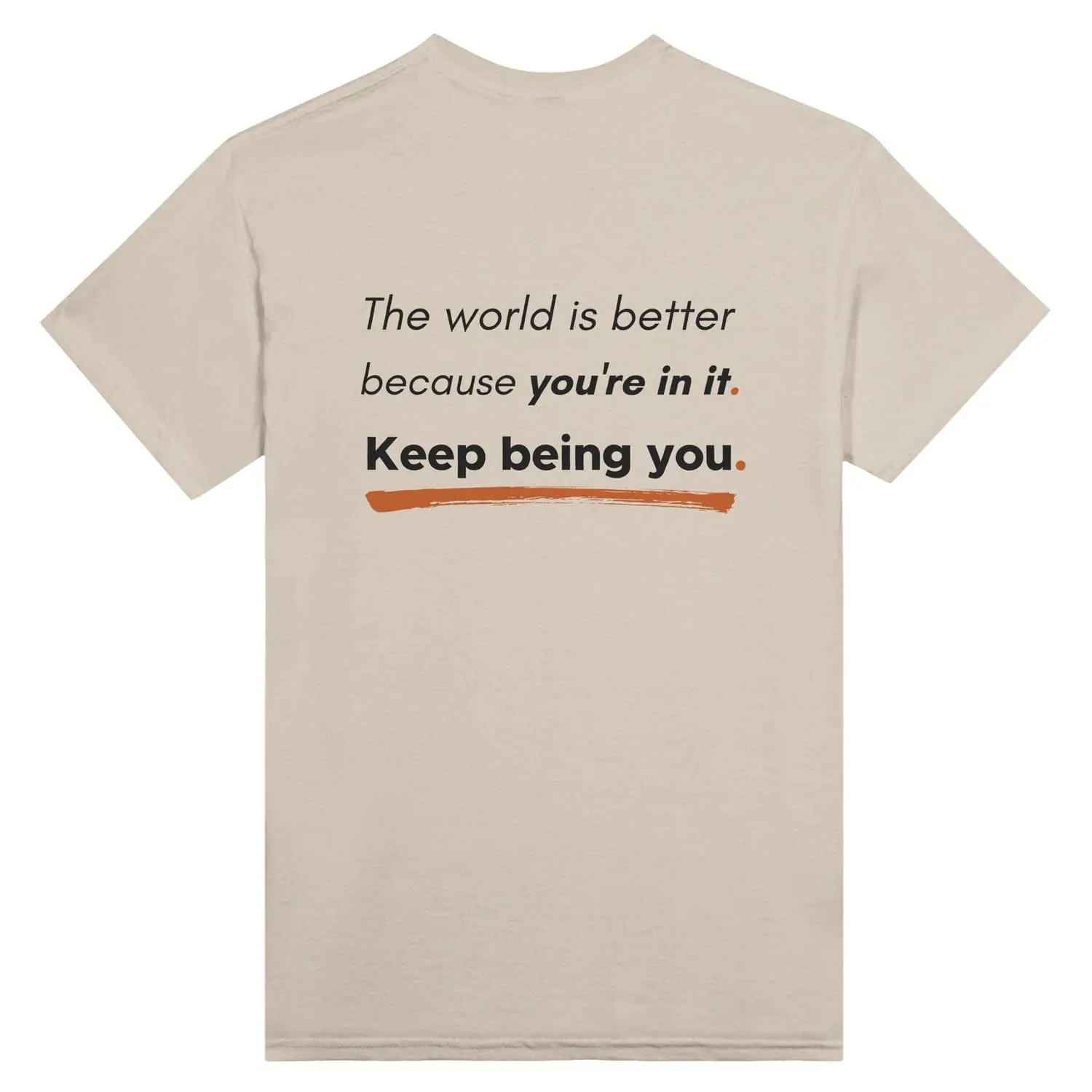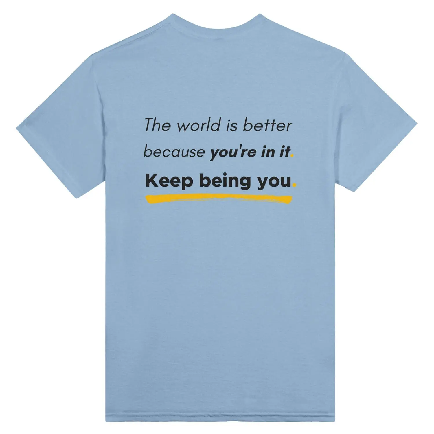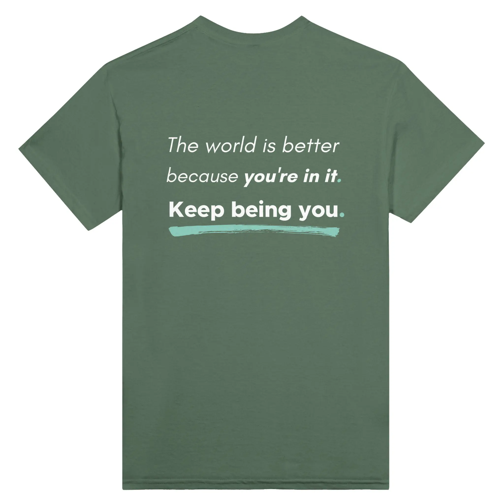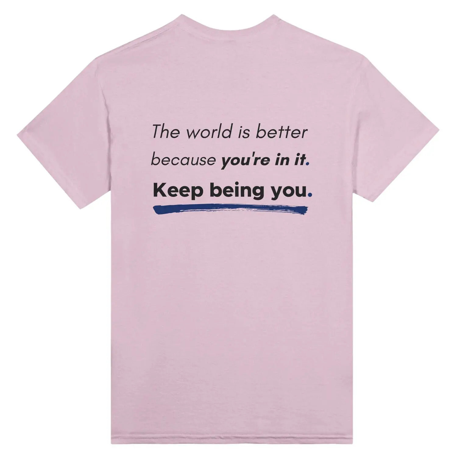 Soften the noise. This calming essential pairs the “You Are Enough” affirmation with a restorative pastel palette. Features a bold front statement and a powerful back print: “The world is better because you’re in it. Keep Being You.”