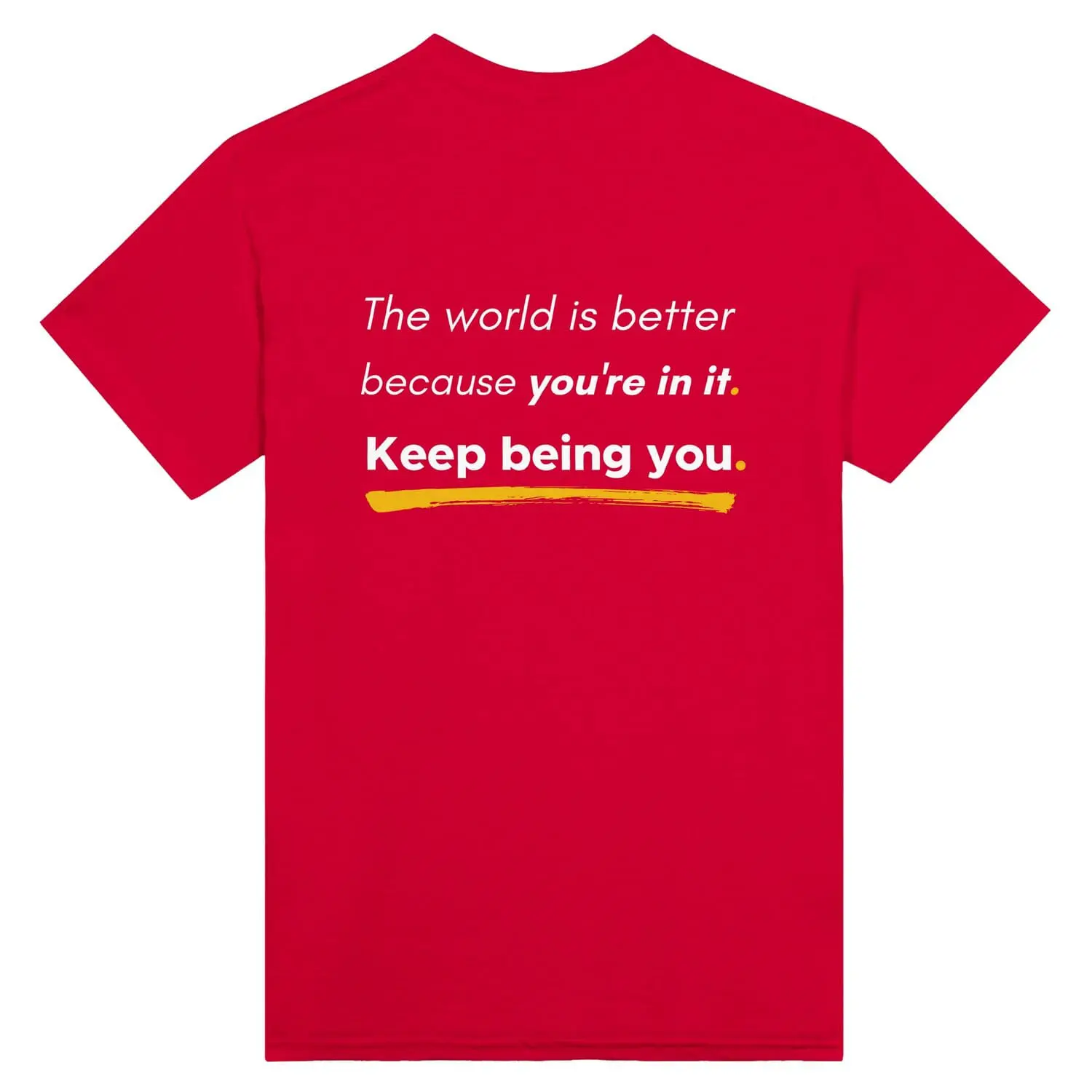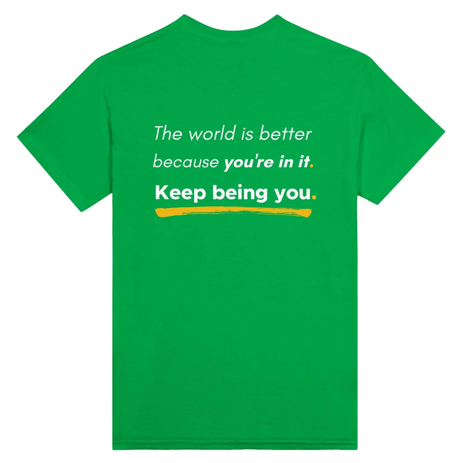 Available in our high-energy Neon palette, this tee ensures the sentiment isn’t whispered—it’s broadcast. The front features a clean, minimalist declaration of worth. The back carries the heavy lifting: a bold affirmation that the world is brighter, better, and more complete simply because you exist.